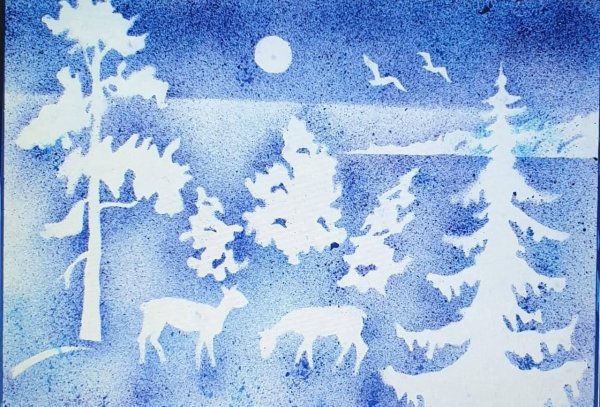 Зимний пейзаж на синем фоне белой краской - это волшебное зрелище, которое заставляет сердце замирать от восторга. Яркий и чистый синий цвет обозначает прохладу и спокойствие, создавая атмосферу умиротворения и таинственности. Белая краска, как снежные хлопья, покрывает все вокруг, придавая ему свежесть и неповторимость. Под этим зимним пейзажем можно представить себе тихую заснеженную поляну, где деревья украшены легкими снежными шапками, а по небу плавно плывут мягкие снежинки. Это момент, который останется в памяти, наполняя душу радостью и восхищением.