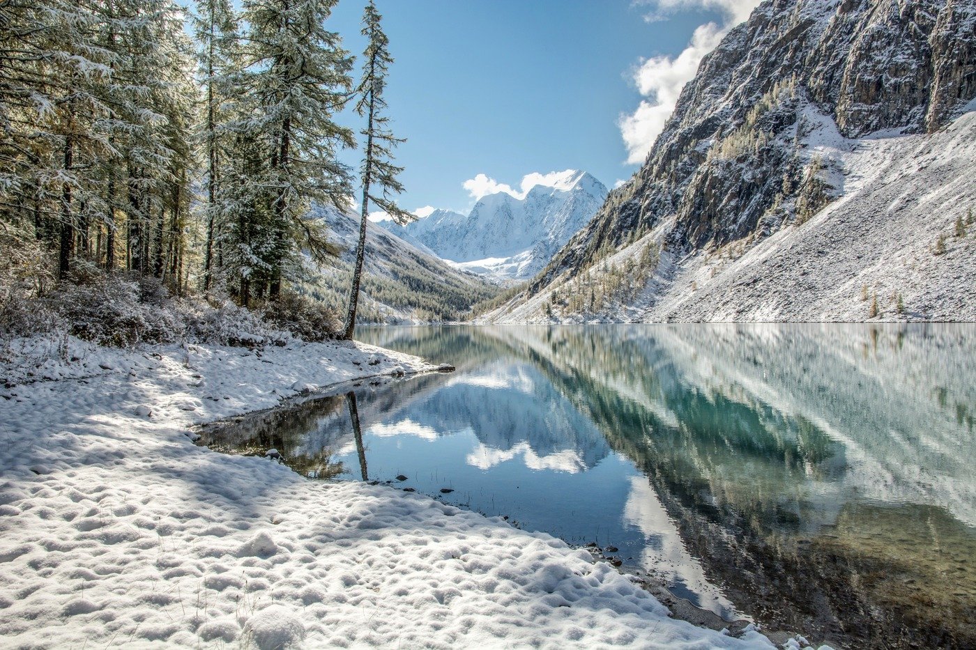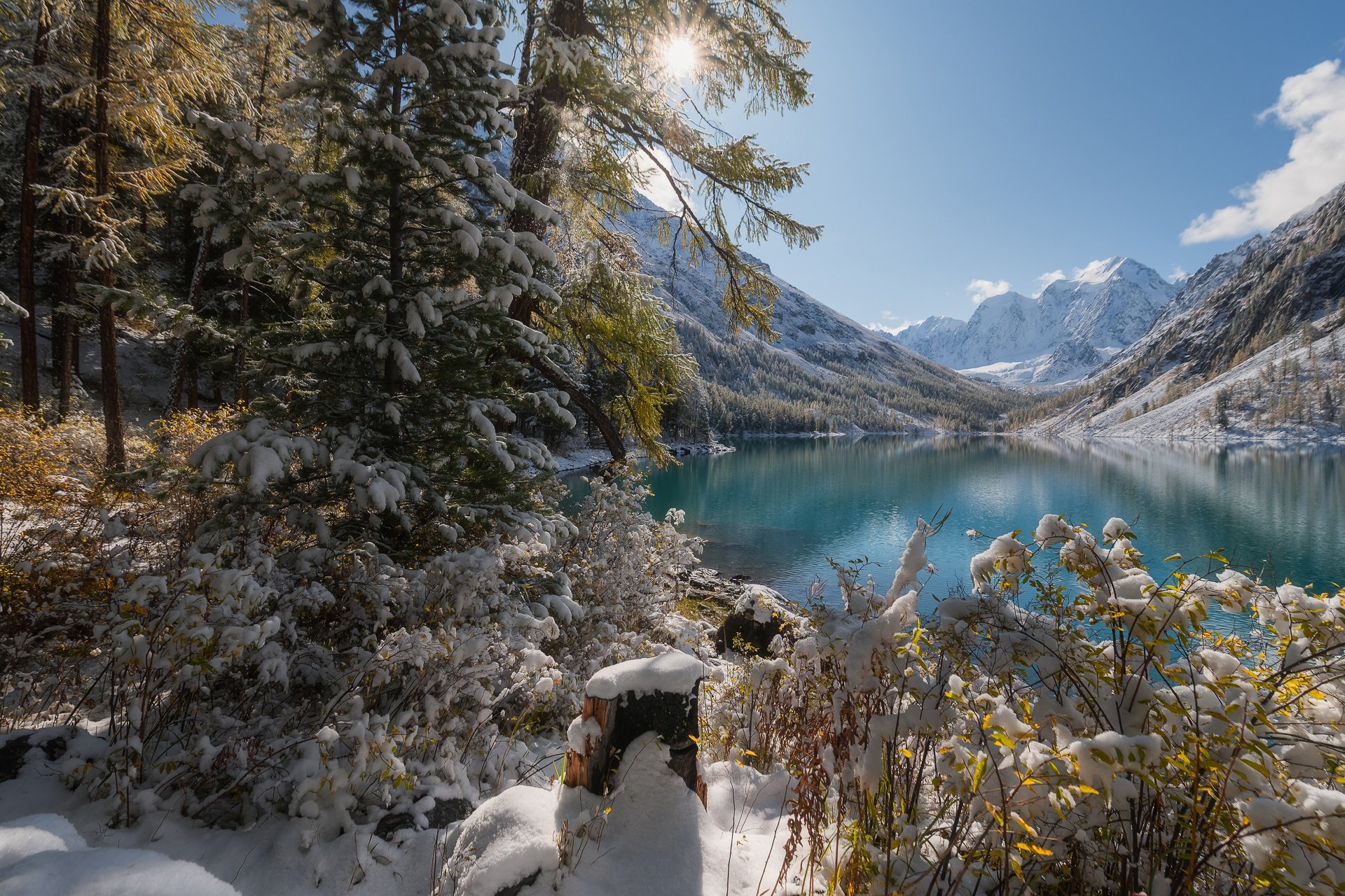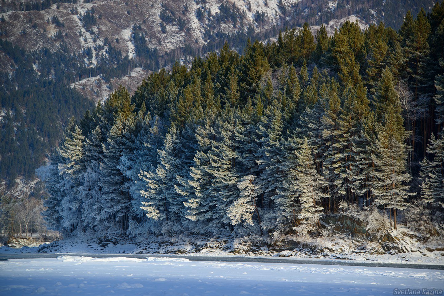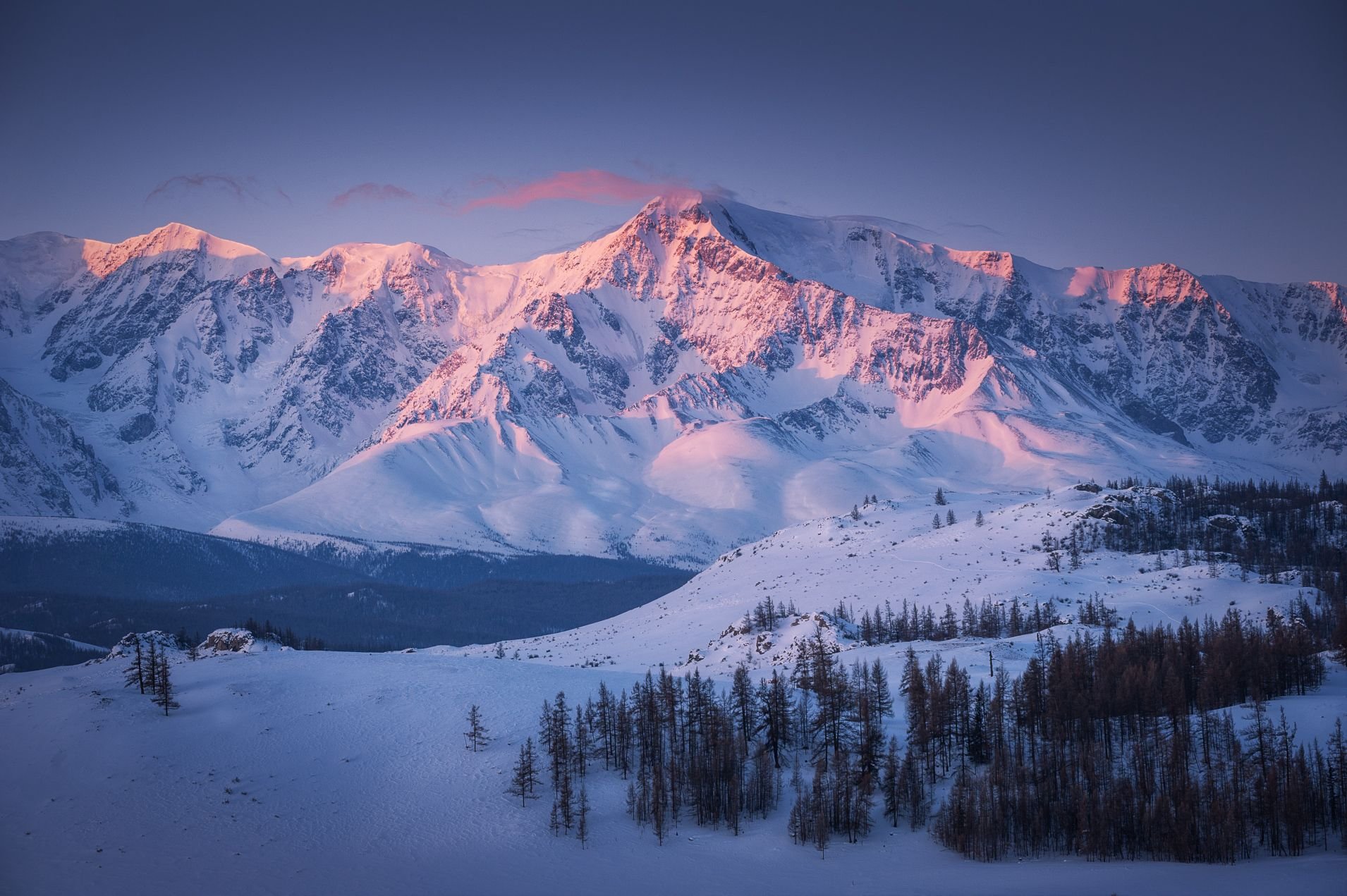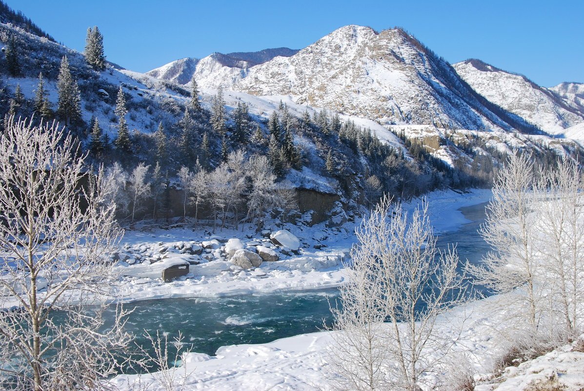 Величественные горы Алтая обретают особую красоту в холодные зимние месяцы. Здесь, среди густого снежного покрова, расстилающегося на вершинах и склонах, открывается удивительный зимний пейзаж. Чистый белый снег, покрытый мерцающими солнечными лучами, создает ощущение сказочности и волшебства. Диковинные формы сугробов и ледяных образований на реках и озерах придают этому месту неповторимость. Воздух пронизан свежестью и чистотой, а тишина только подчеркивает величественность окружающей природы. Зимний пейзаж Алтая - это мир, в котором можно насладиться уединением и спокойствием, получить удовольствие от красоты и гармонии природы.