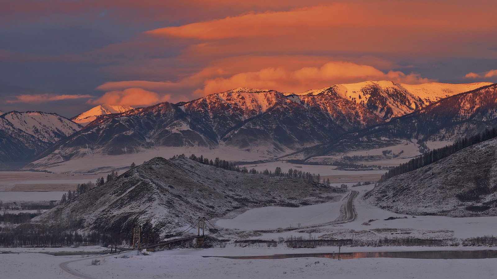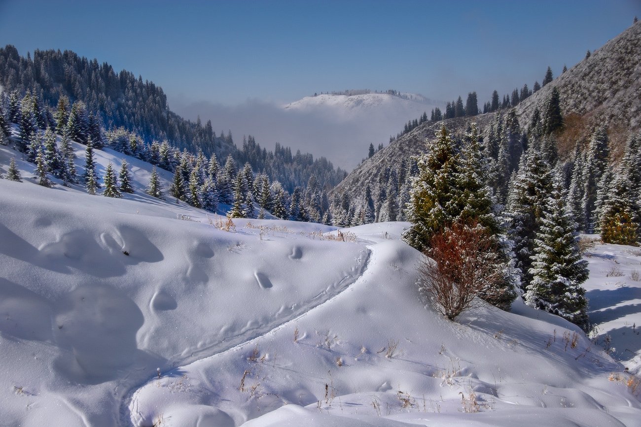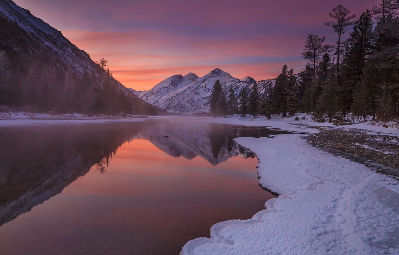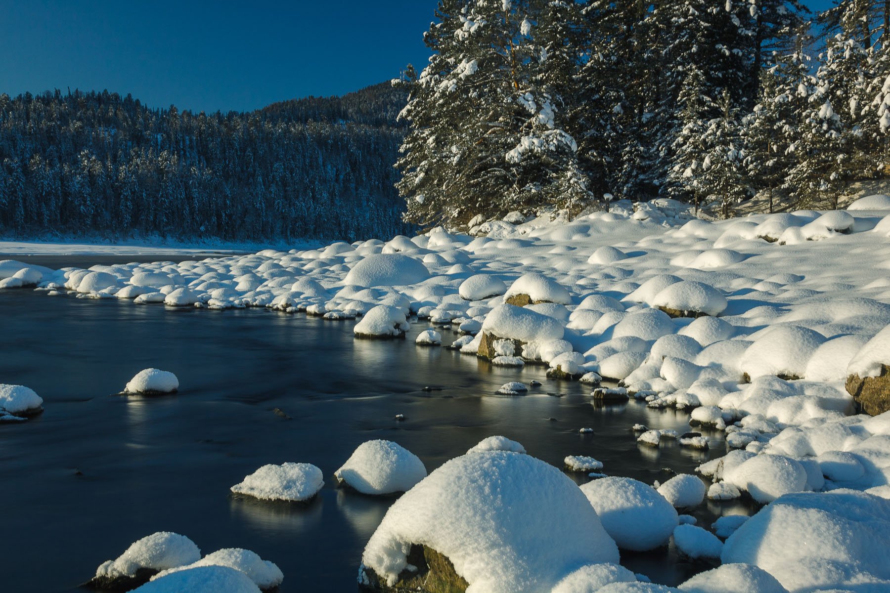 Величественные горы Алтая обретают особую красоту в холодные зимние месяцы. Здесь, среди густого снежного покрова, расстилающегося на вершинах и склонах, открывается удивительный зимний пейзаж. Чистый белый снег, покрытый мерцающими солнечными лучами, создает ощущение сказочности и волшебства. Диковинные формы сугробов и ледяных образований на реках и озерах придают этому месту неповторимость. Воздух пронизан свежестью и чистотой, а тишина только подчеркивает величественность окружающей природы. Зимний пейзаж Алтая - это мир, в котором можно насладиться уединением и спокойствием, получить удовольствие от красоты и гармонии природы.