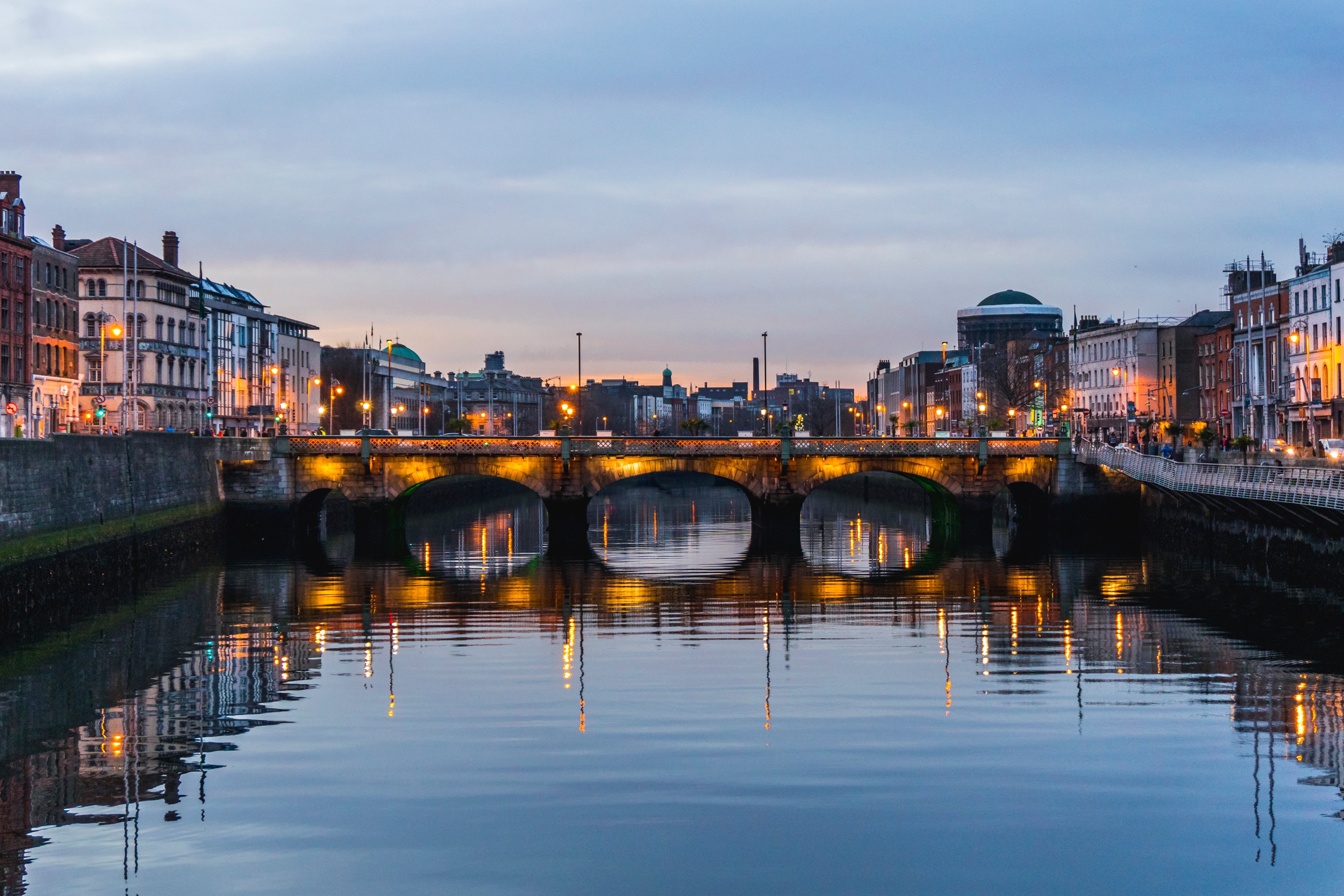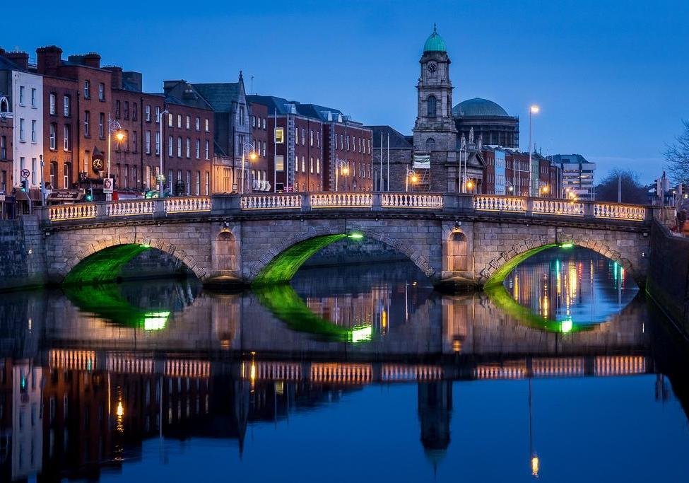 Ирландия достопримечательности Дублинский замок с мостом через реку