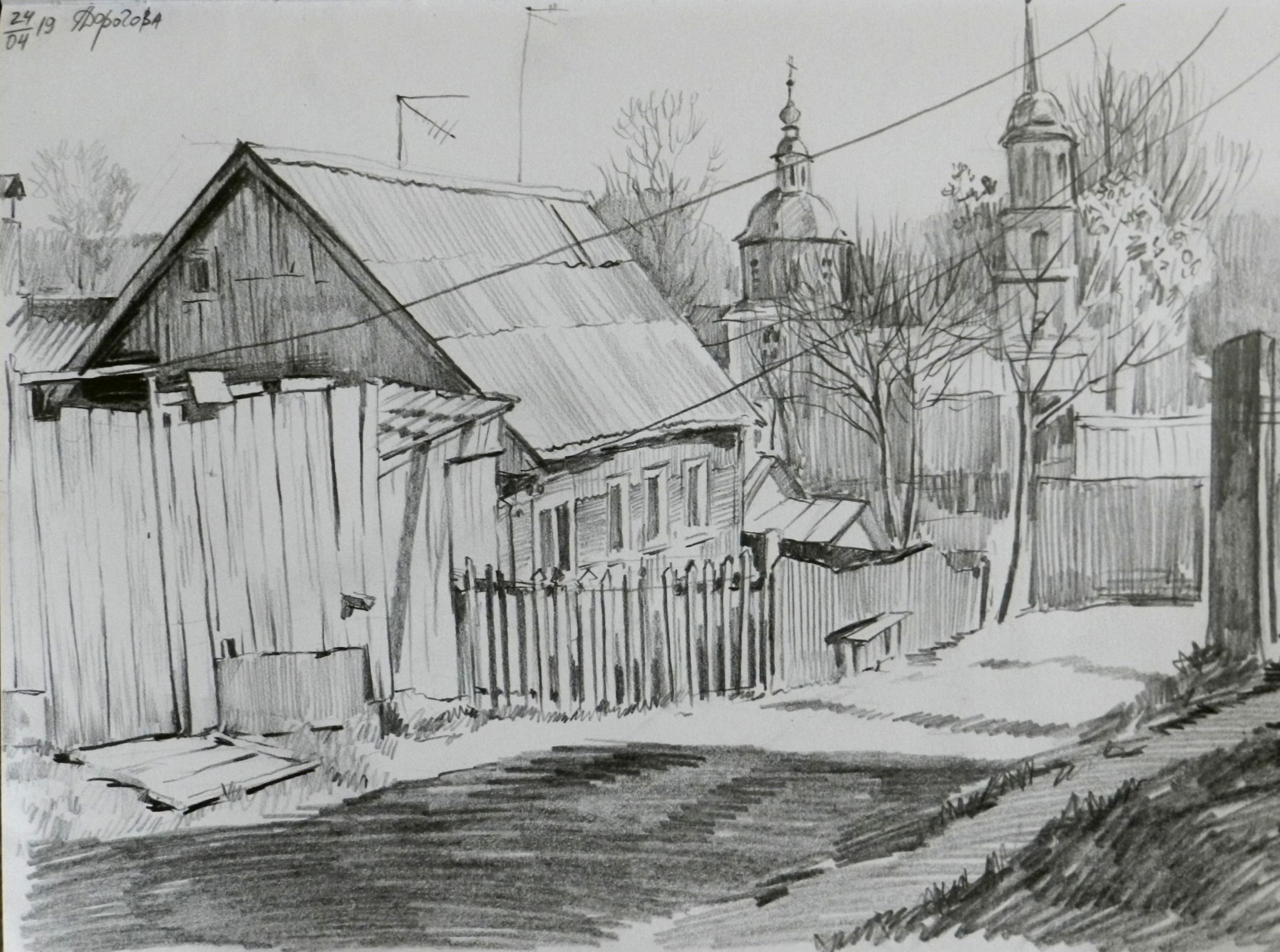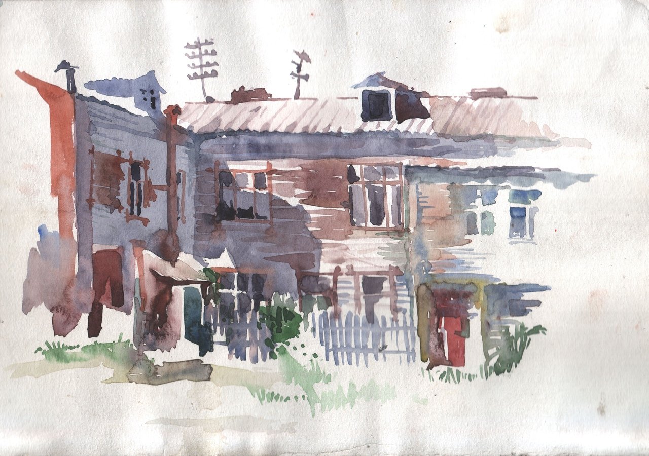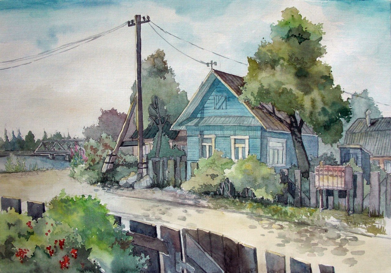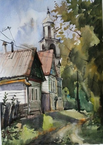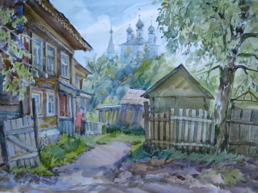 Пленэр акварелью деревня