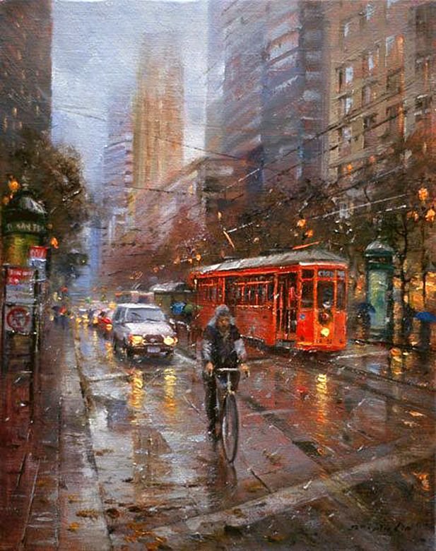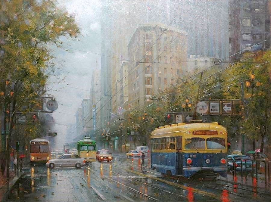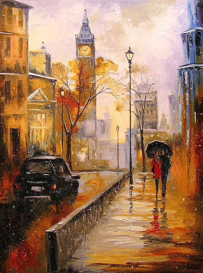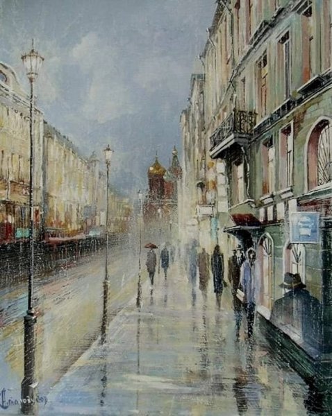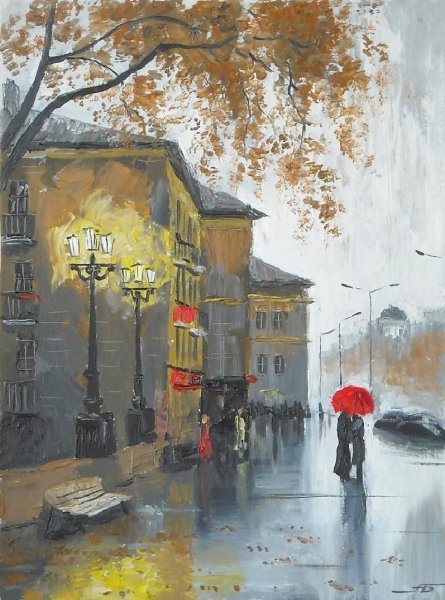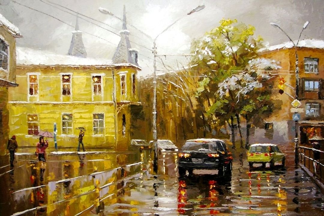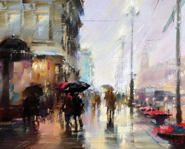 Живопись дождливый город
