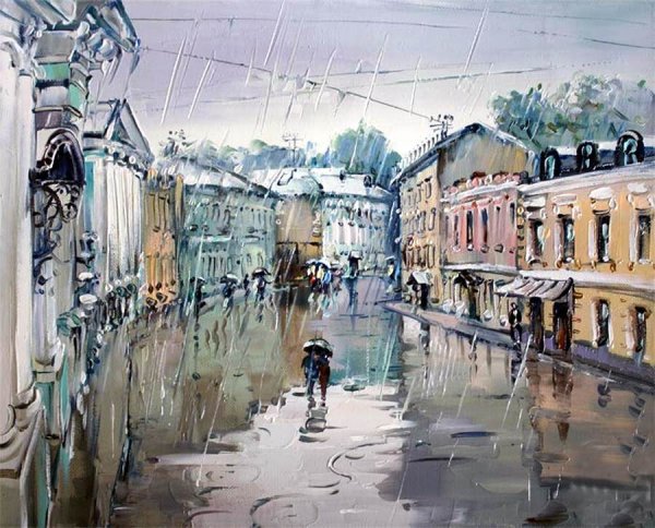 Дождь в городе живопись
