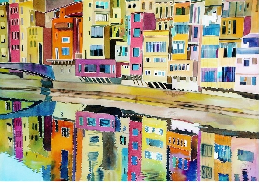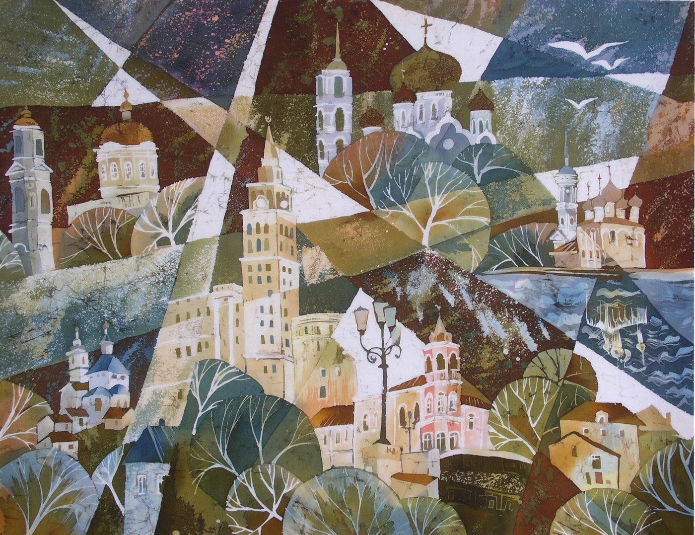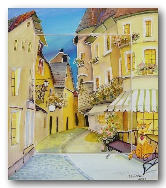 Улочки домики сказочный городок батик живопись