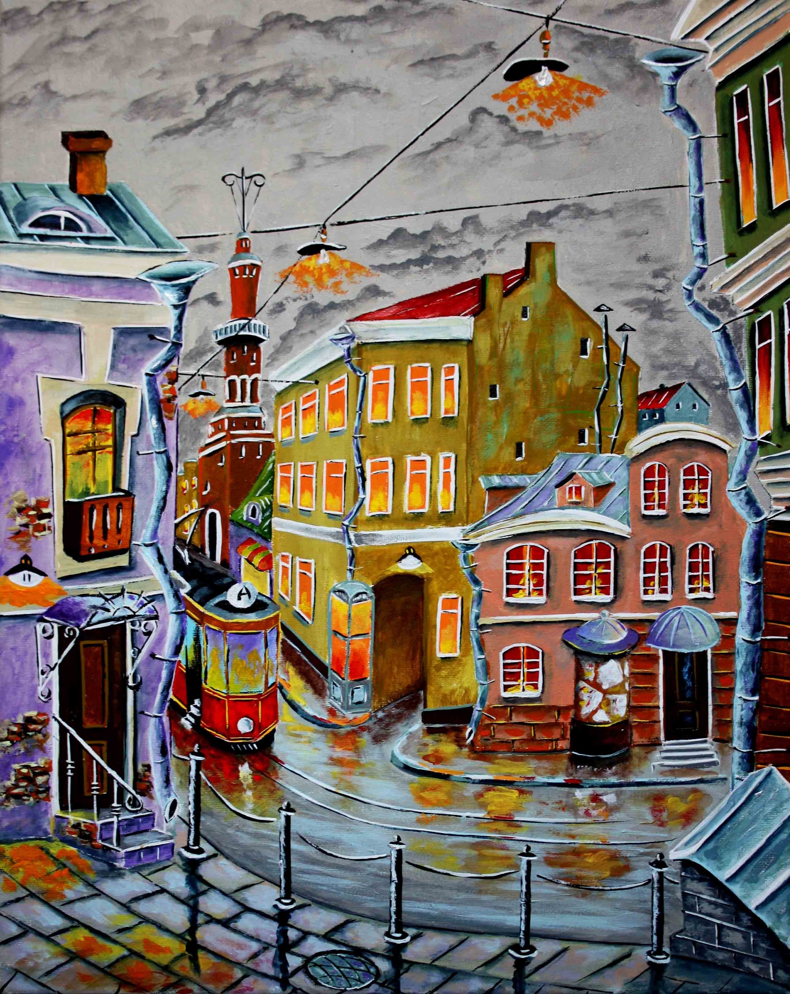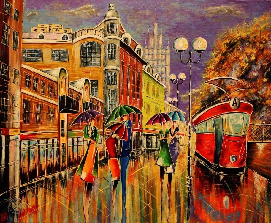 Осенний городской пейзаж живопись