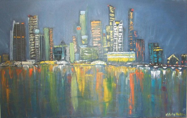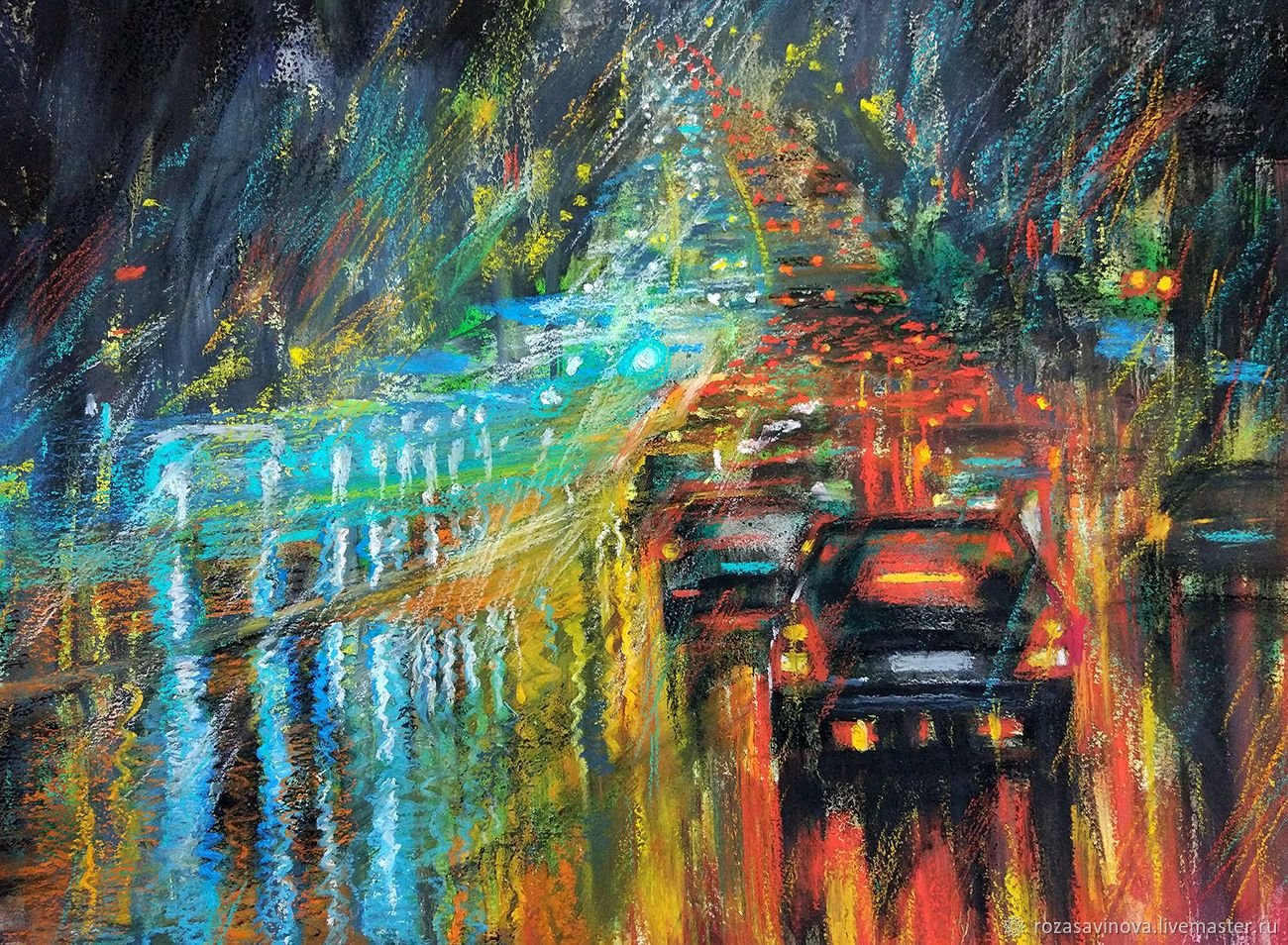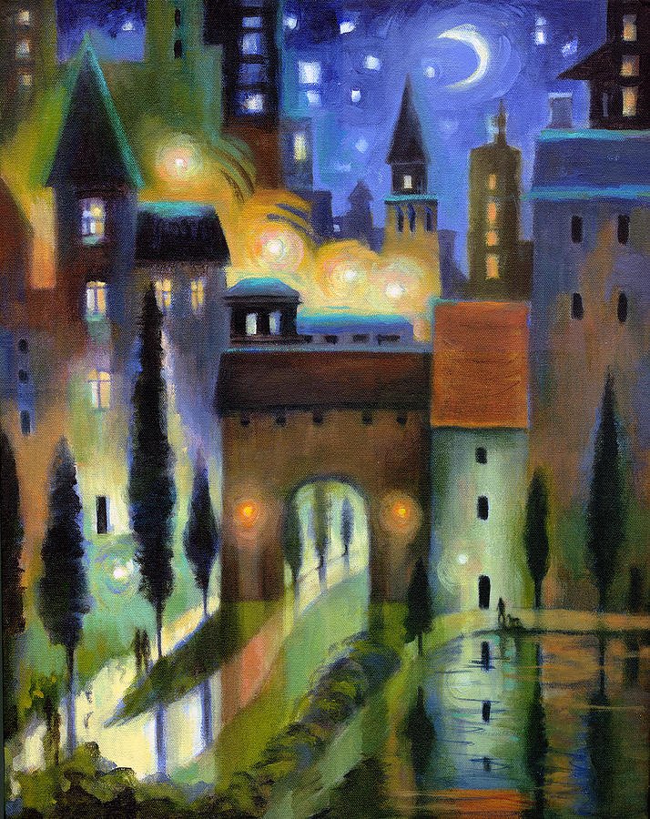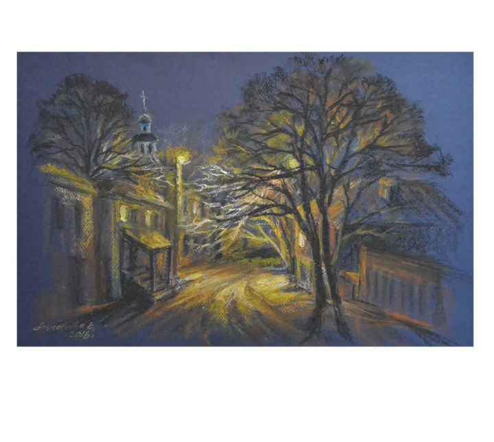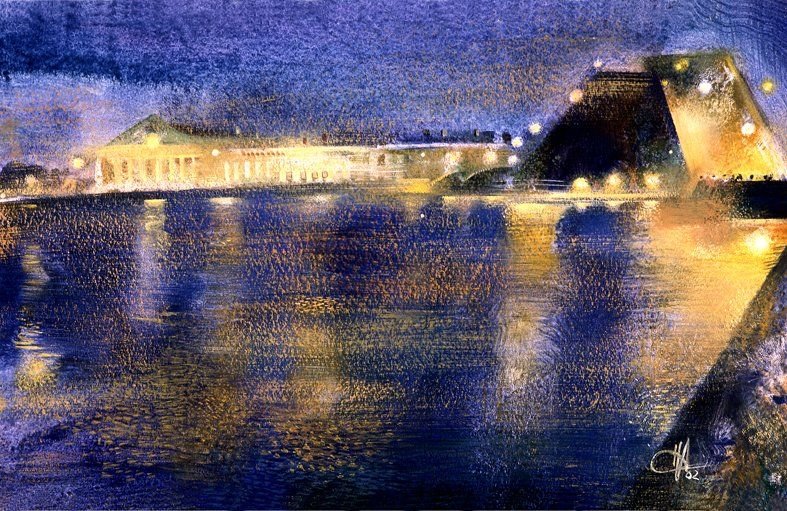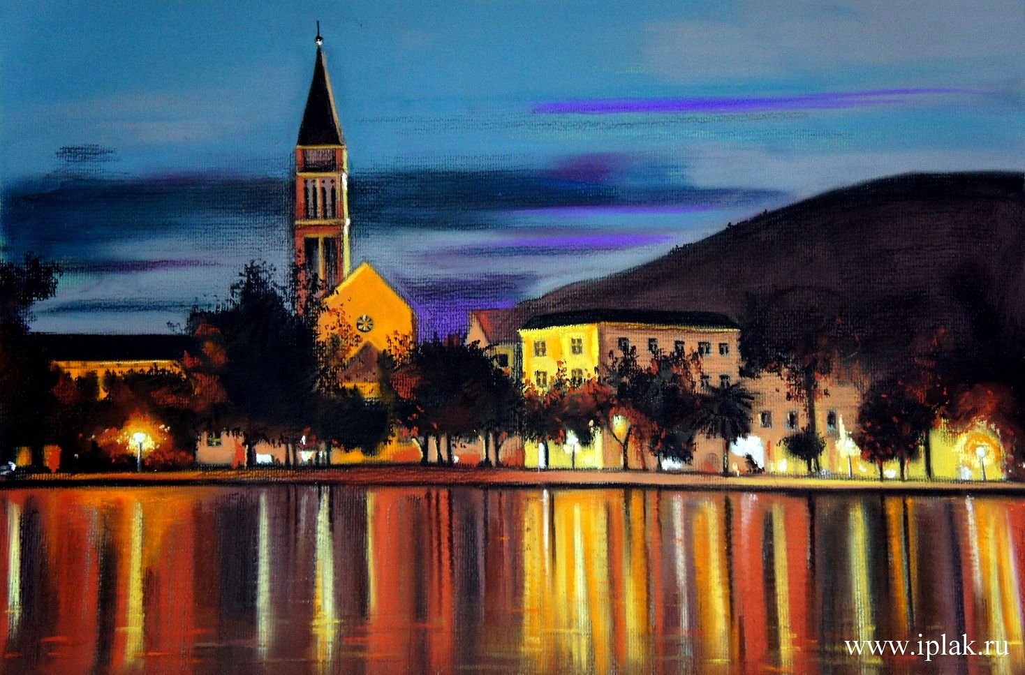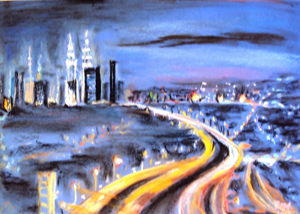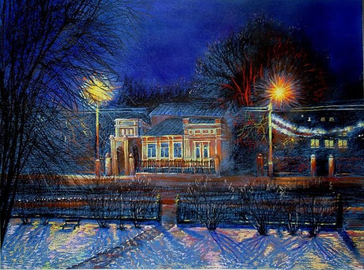Ночной городской пейзаж пастелью (50 фото)