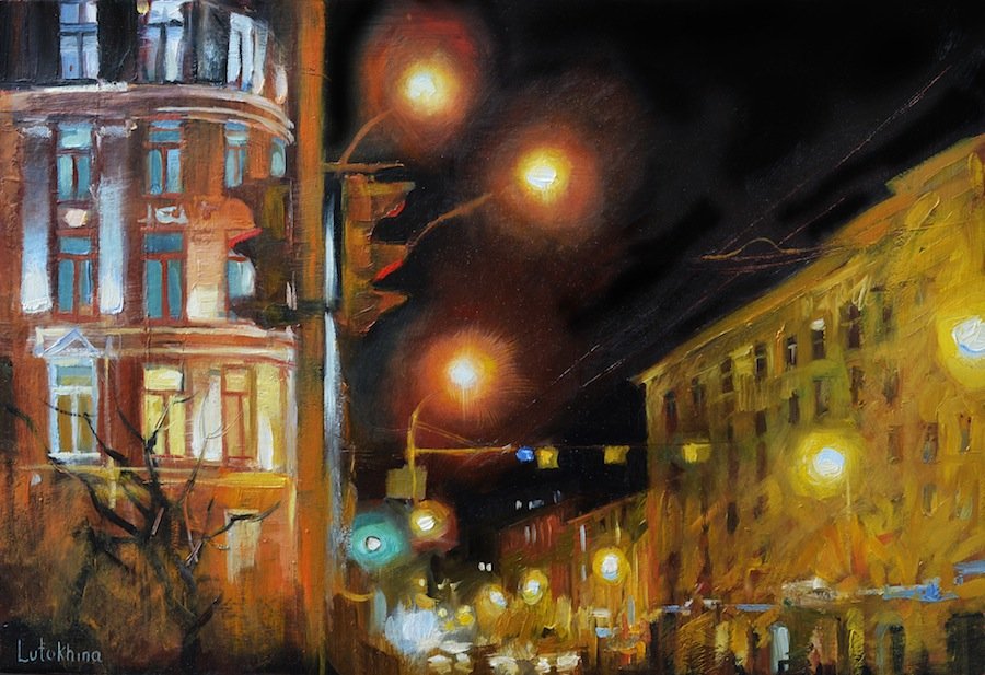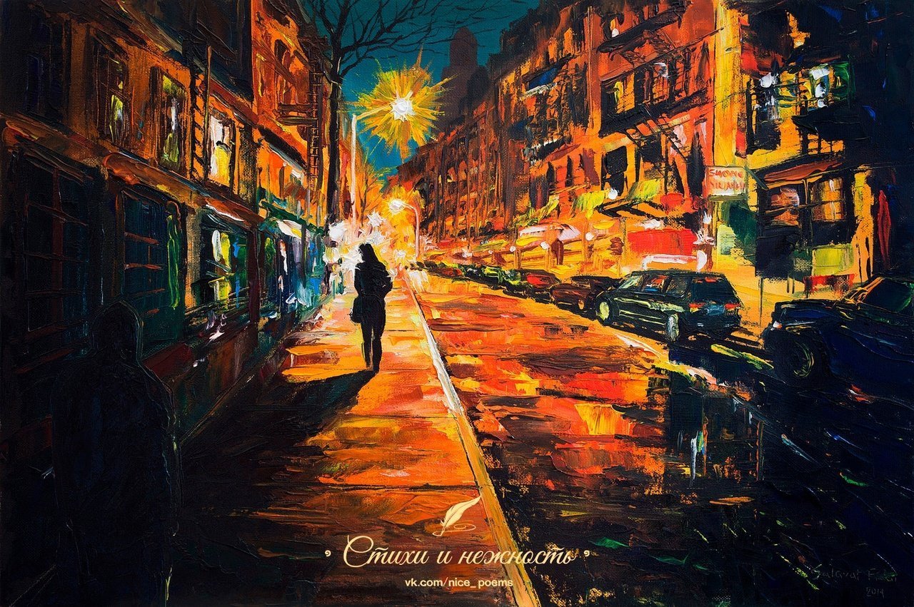 Живопись ночь улица фонарь аптека