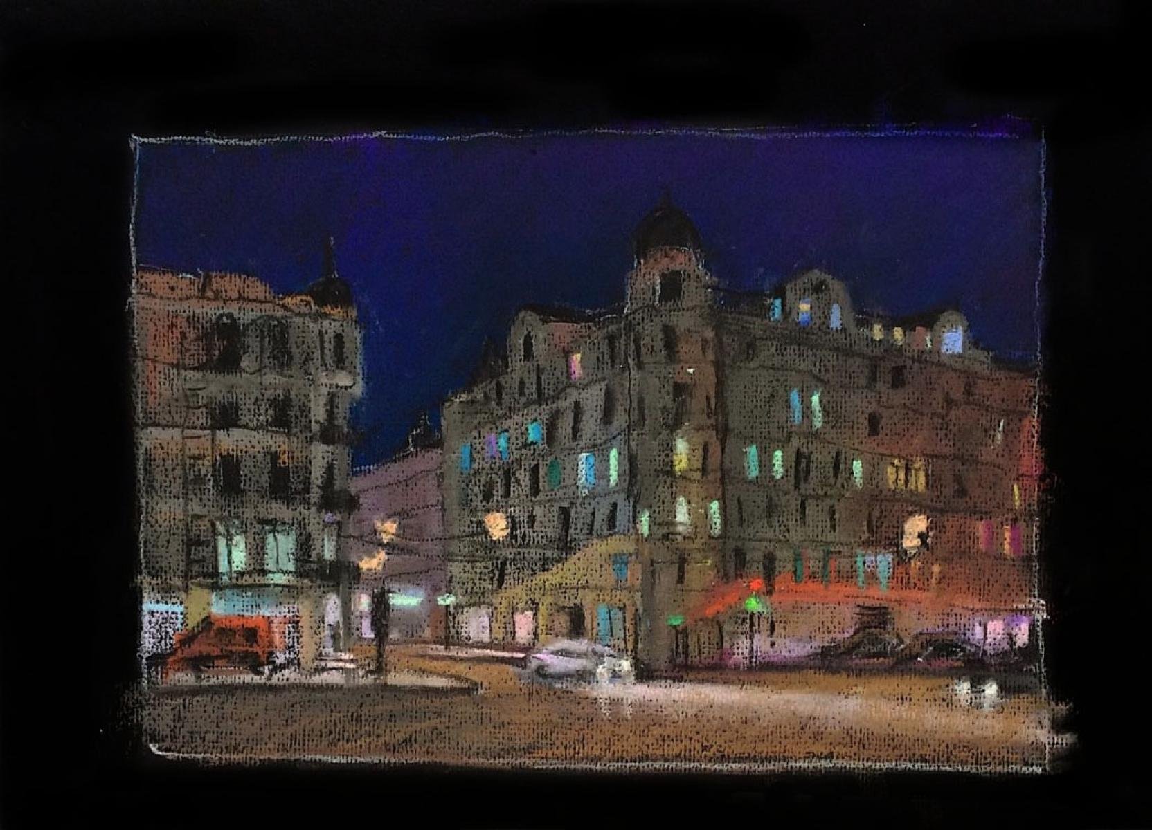 Ночной город пастелью
