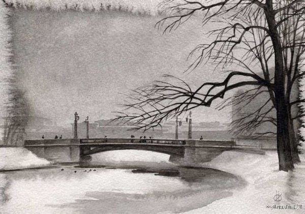 Зимняя улица карандашом