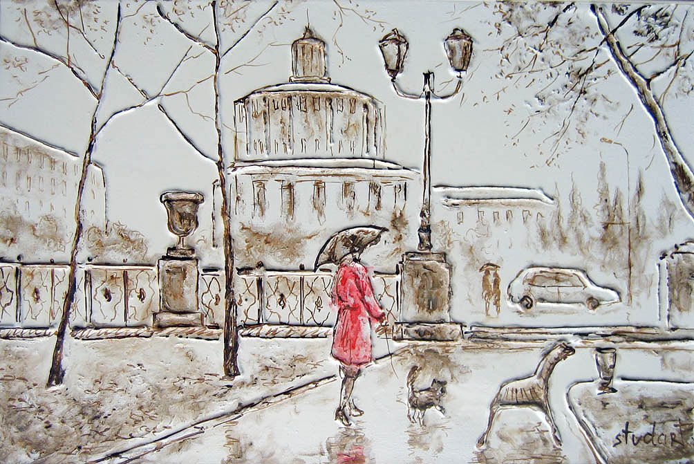 Городской пейзаж со стаффажем городской мотив