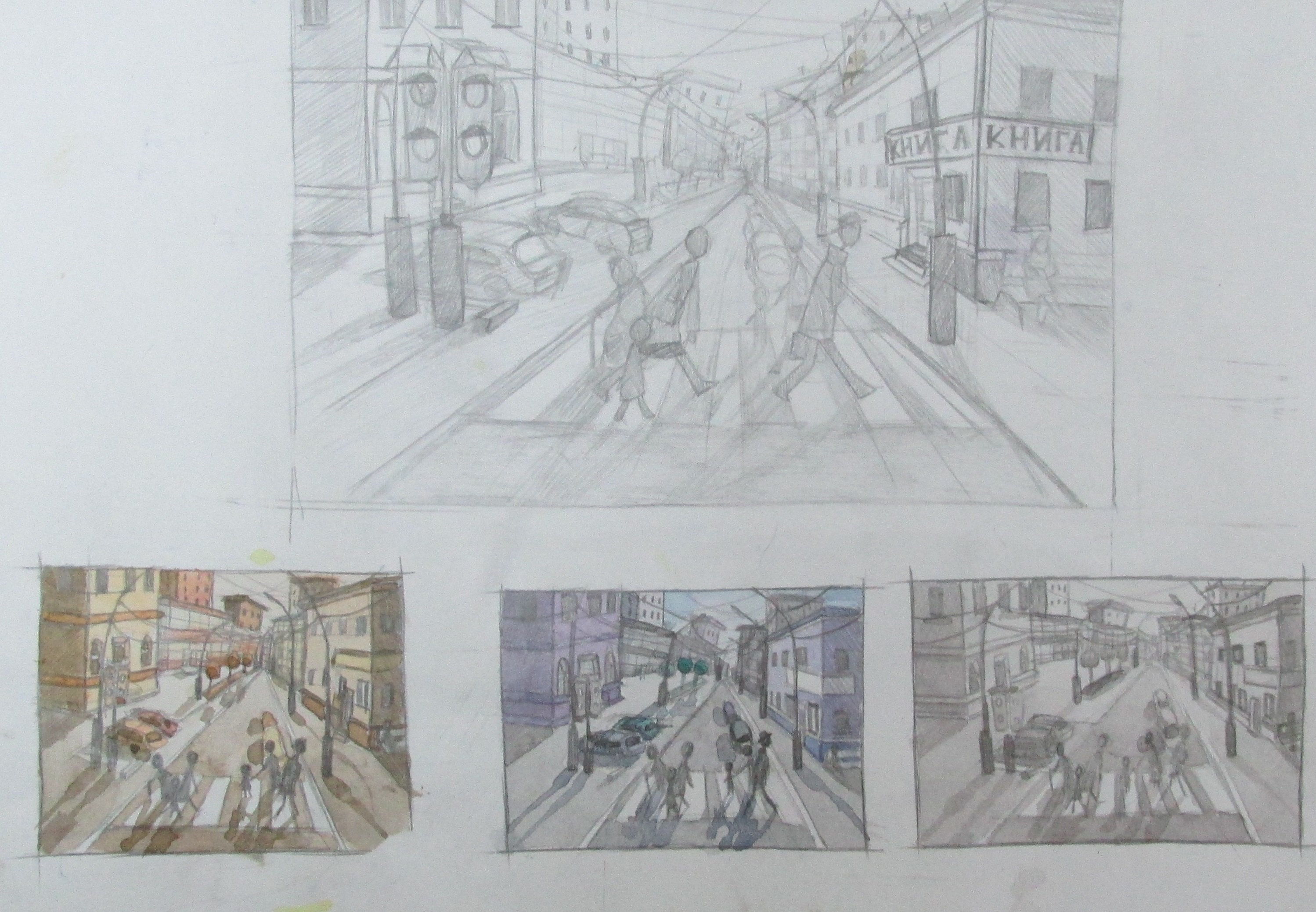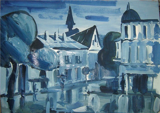 Пейзажи городские гуашью в одном цвете