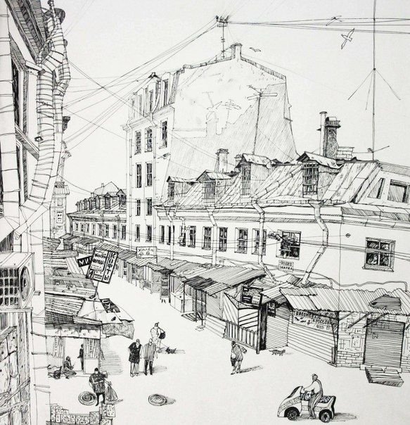 Зарисовки городского пейзажа со стаффажем