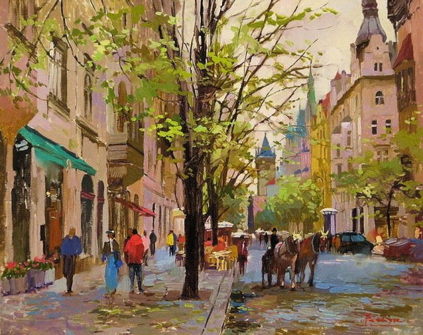Городской пейзаж со стаффажем станковая