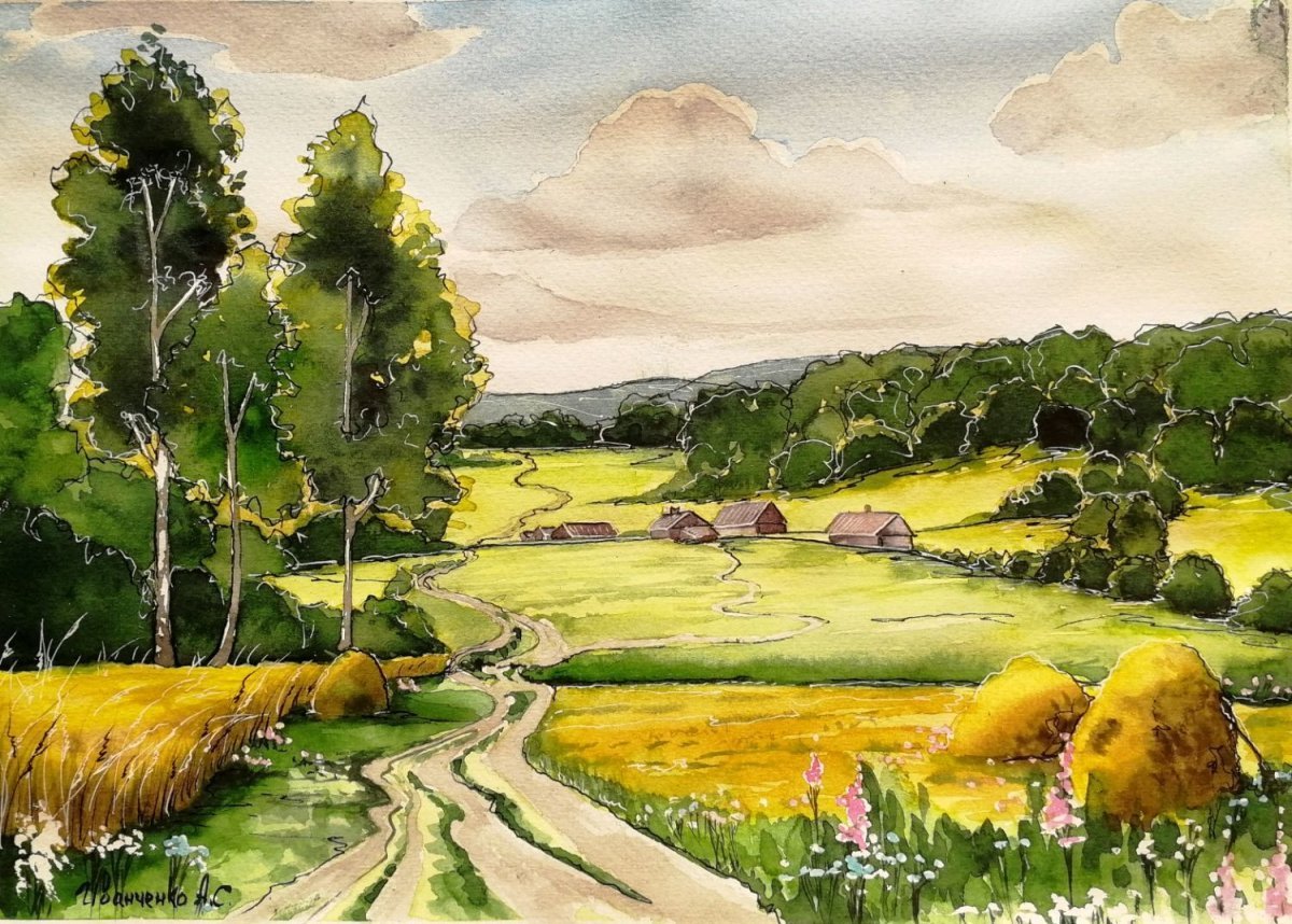 Этапы рисования пейзажа акварелью