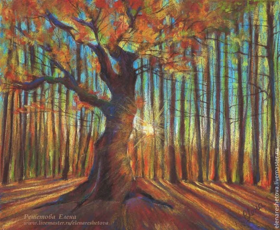 Осеннее дерево пастелью