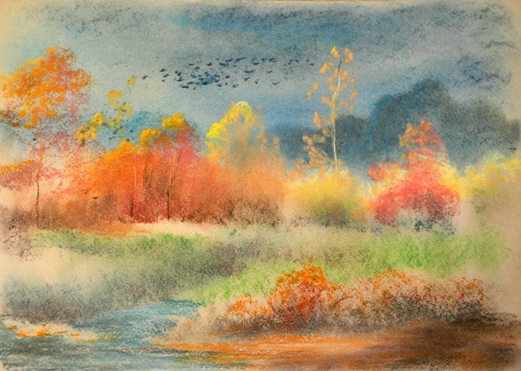Живопись пастелью осенний пейзаж