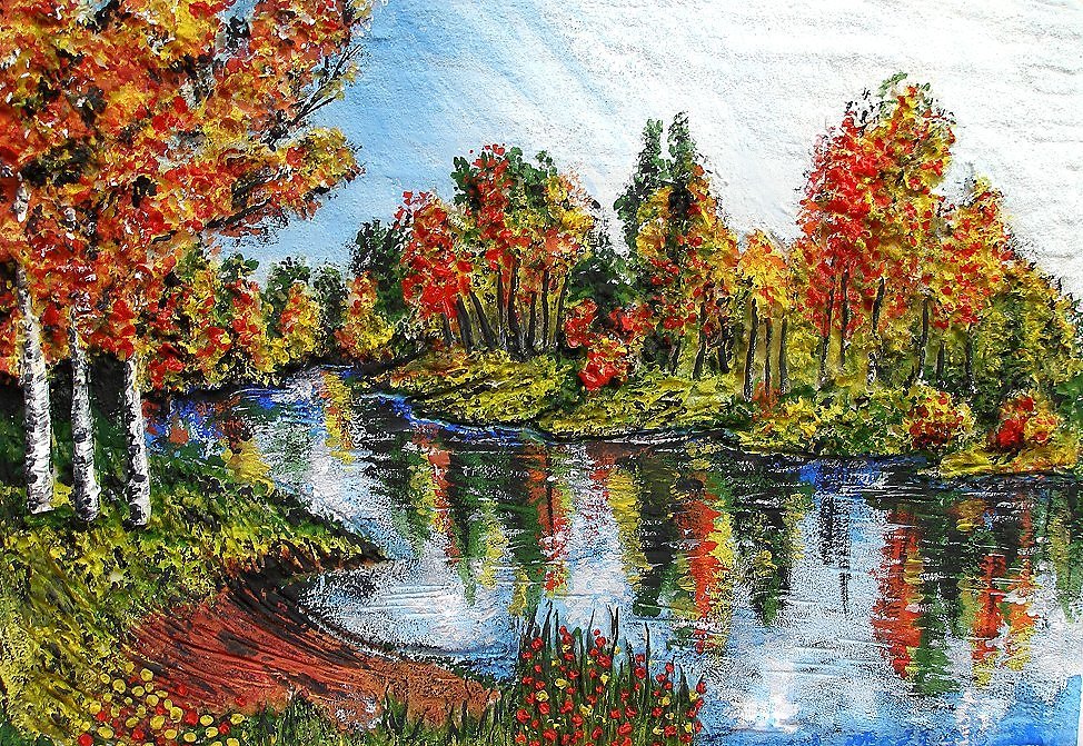 Пластилинография - это уникальный художественный способ создания изображений, который позволяет воплотить на холсте осенний пейзаж с неповторимой красотой и оригинальностью. Визуальная техника пластилинографии использует пластилин как основной материал для создания текстур, форм и объемов на поверхности картины. Используя разнообразные оттенки коричневого, оранжевого, желтого и красного пластилина, можно передать атмосферу осени с ее яркими листьями, падающими дождями и теплым солнечным светом. Каждая деталь пейзажа - от деревьев и кустов до водоемов и неба - получает живое и объемное выражение благодаря пластилину, что придает работе особую привлекательность и реалистичность. Осенний пейзаж в пластилинографии станет украшением любого интерьера и подарит радость и восхищение своим неповторимым образом.