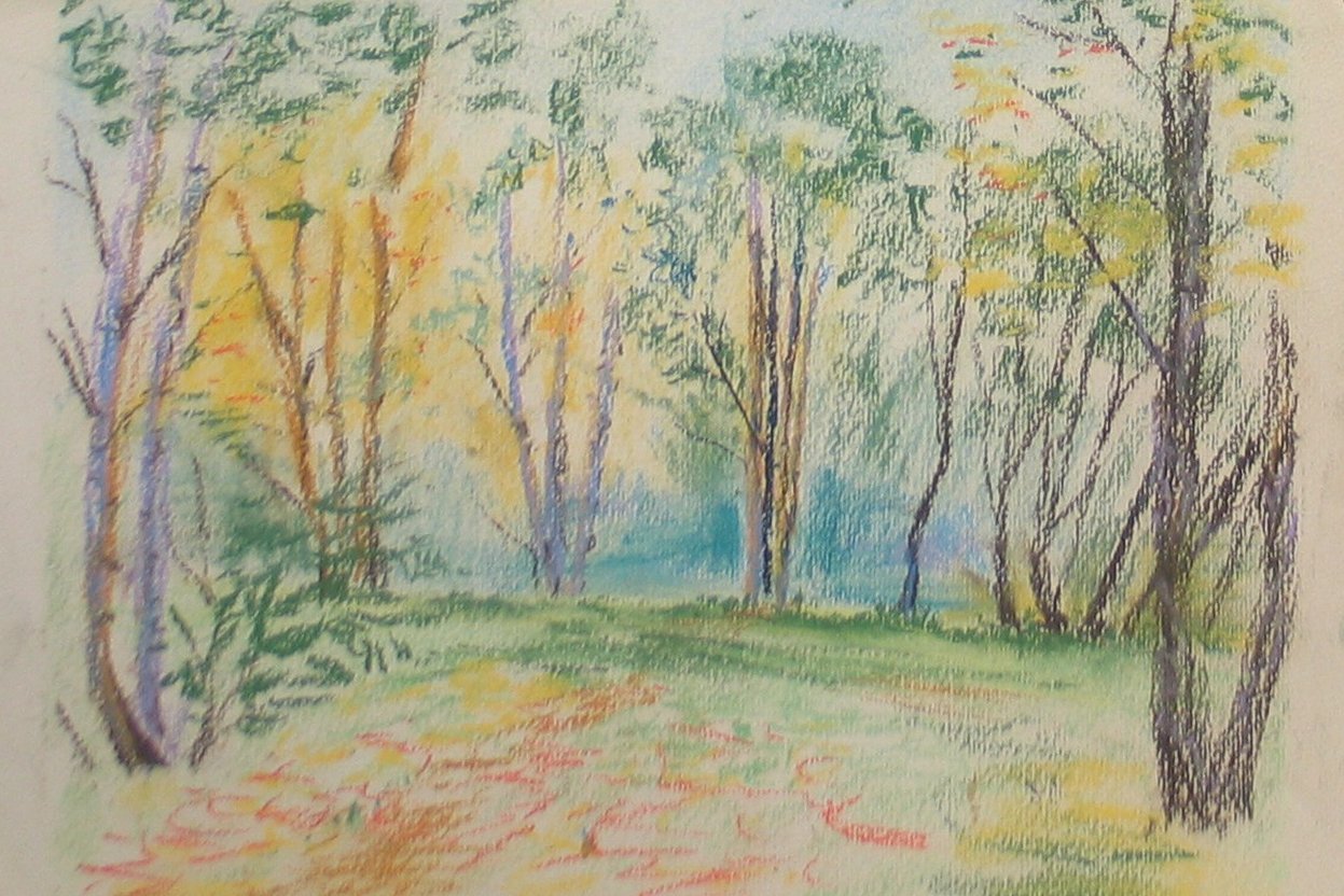 Осенний лес цветными карандашами