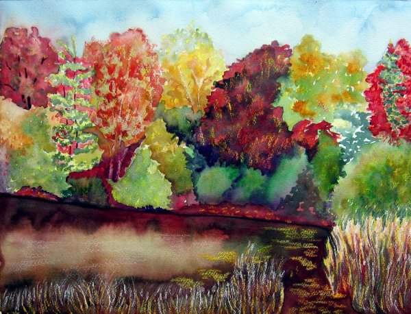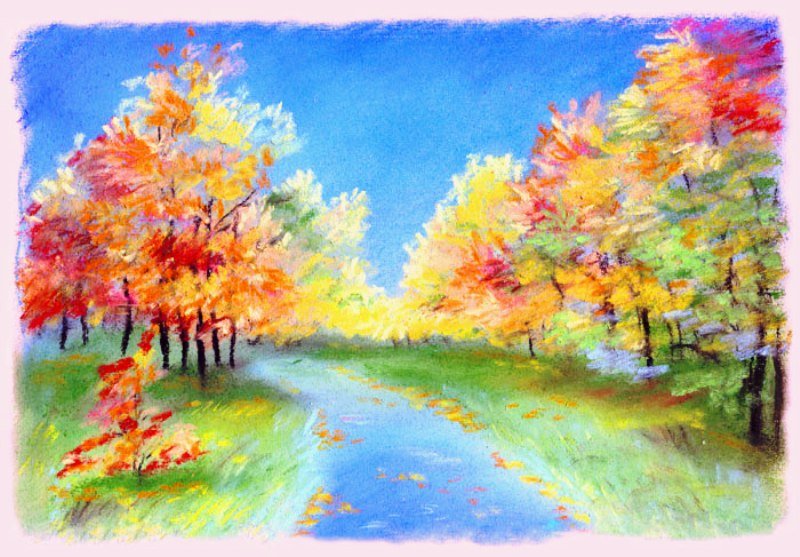 Осень цветными карандашами