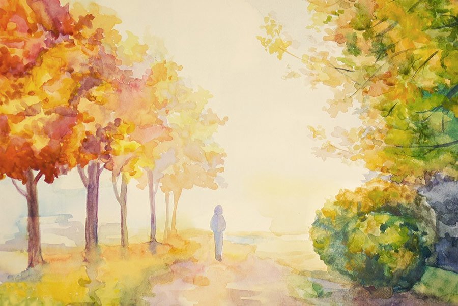 Рисование осеннего пейзажа акварелью