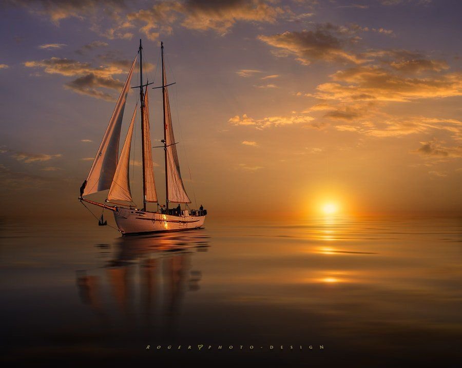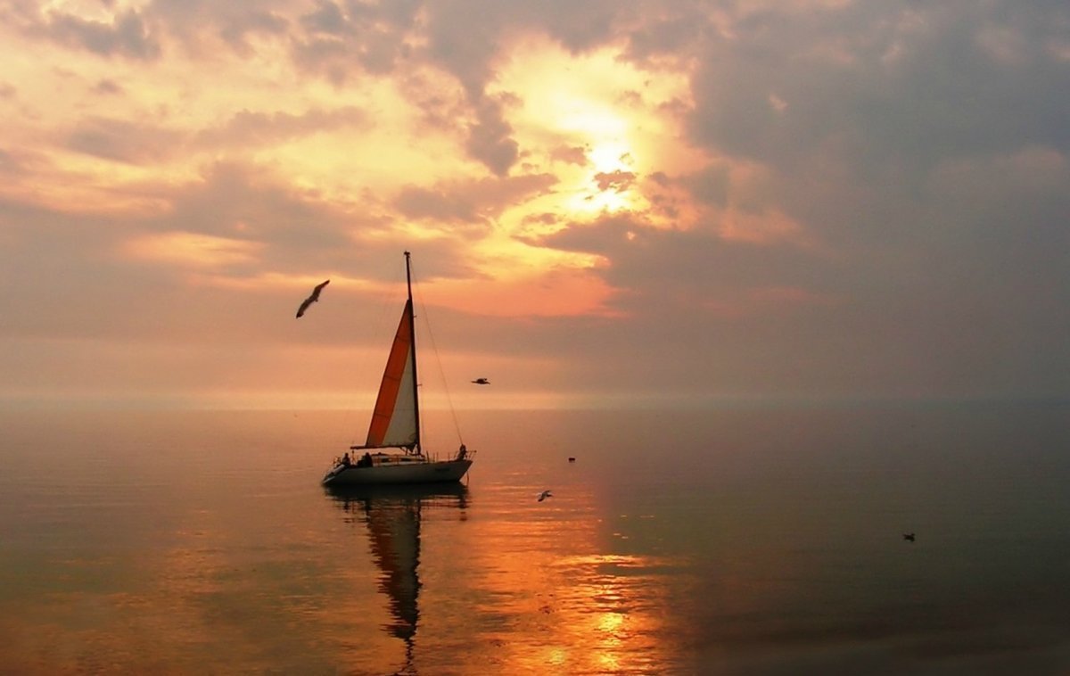 Море закат парусник