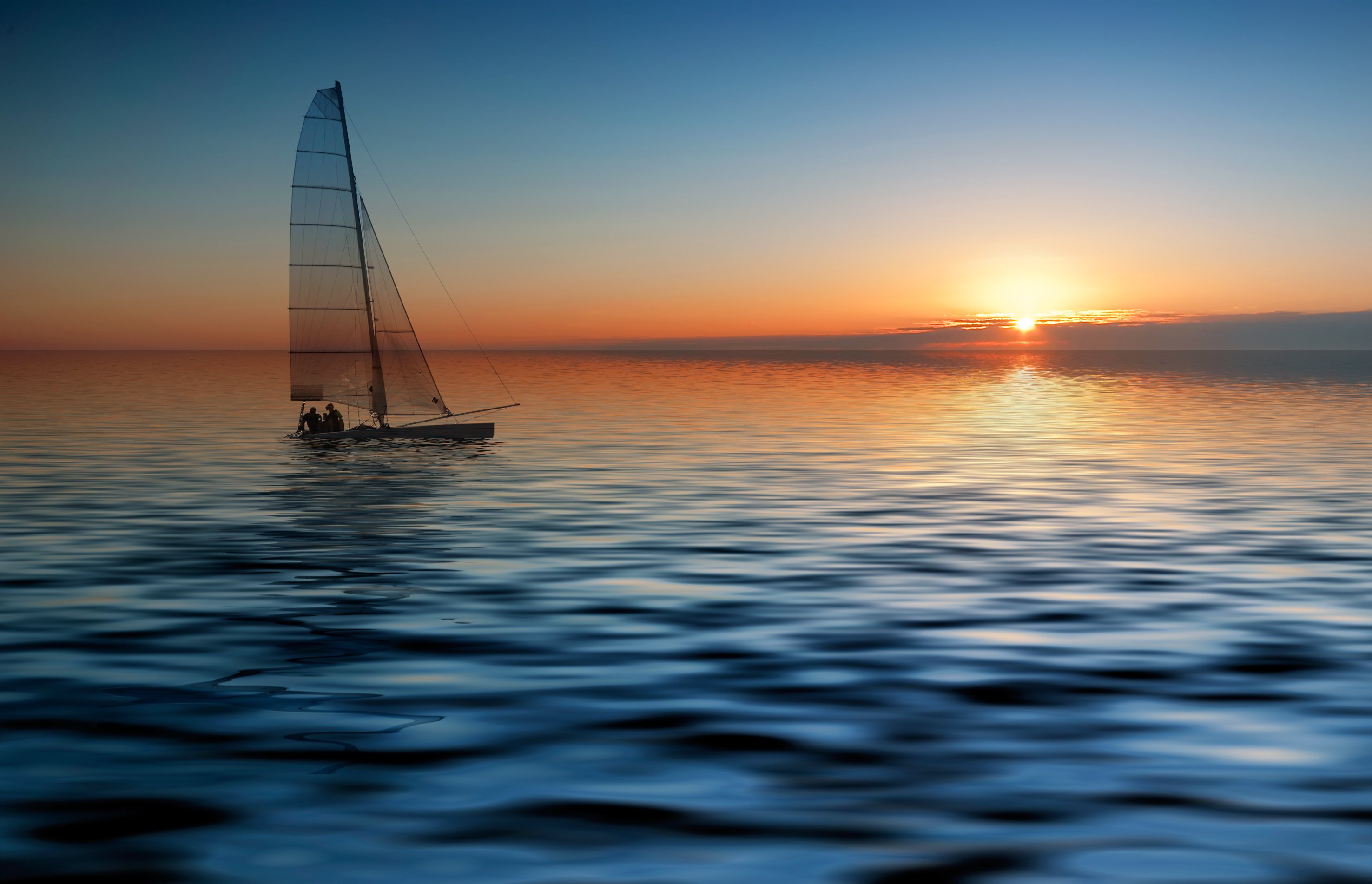 Яхта в море на рассвете