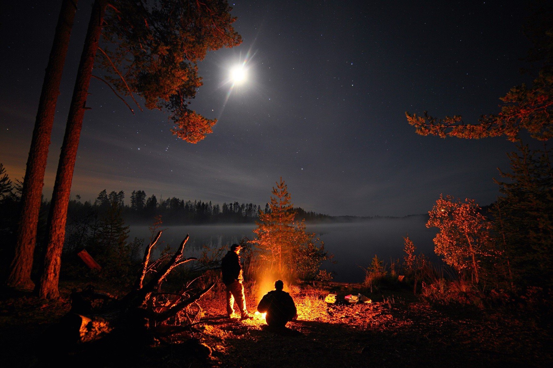Костер на берегу озера