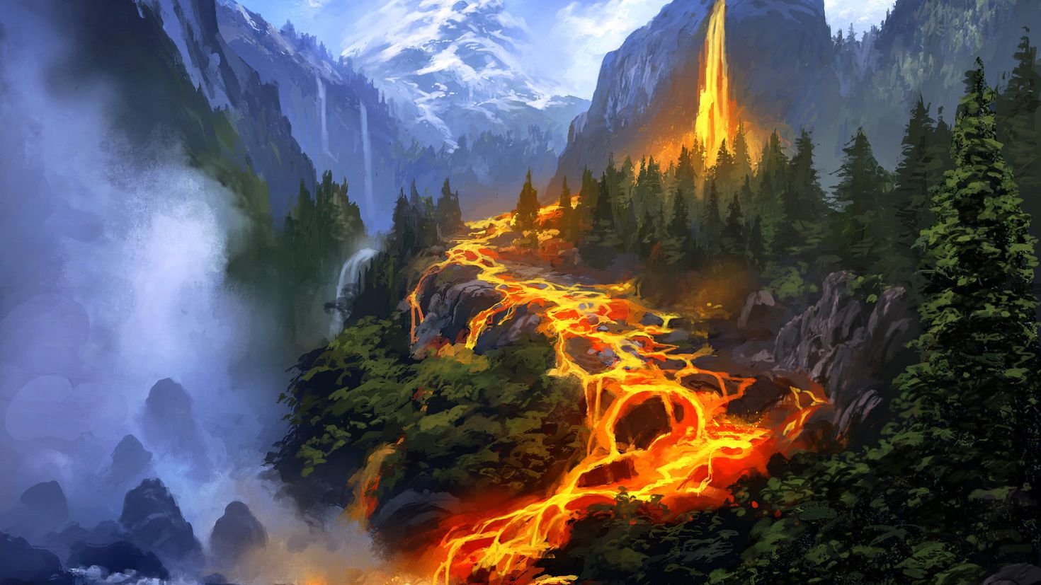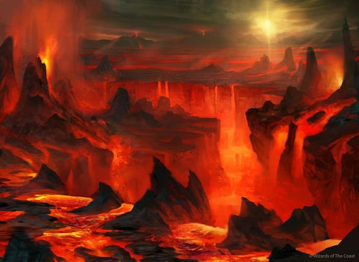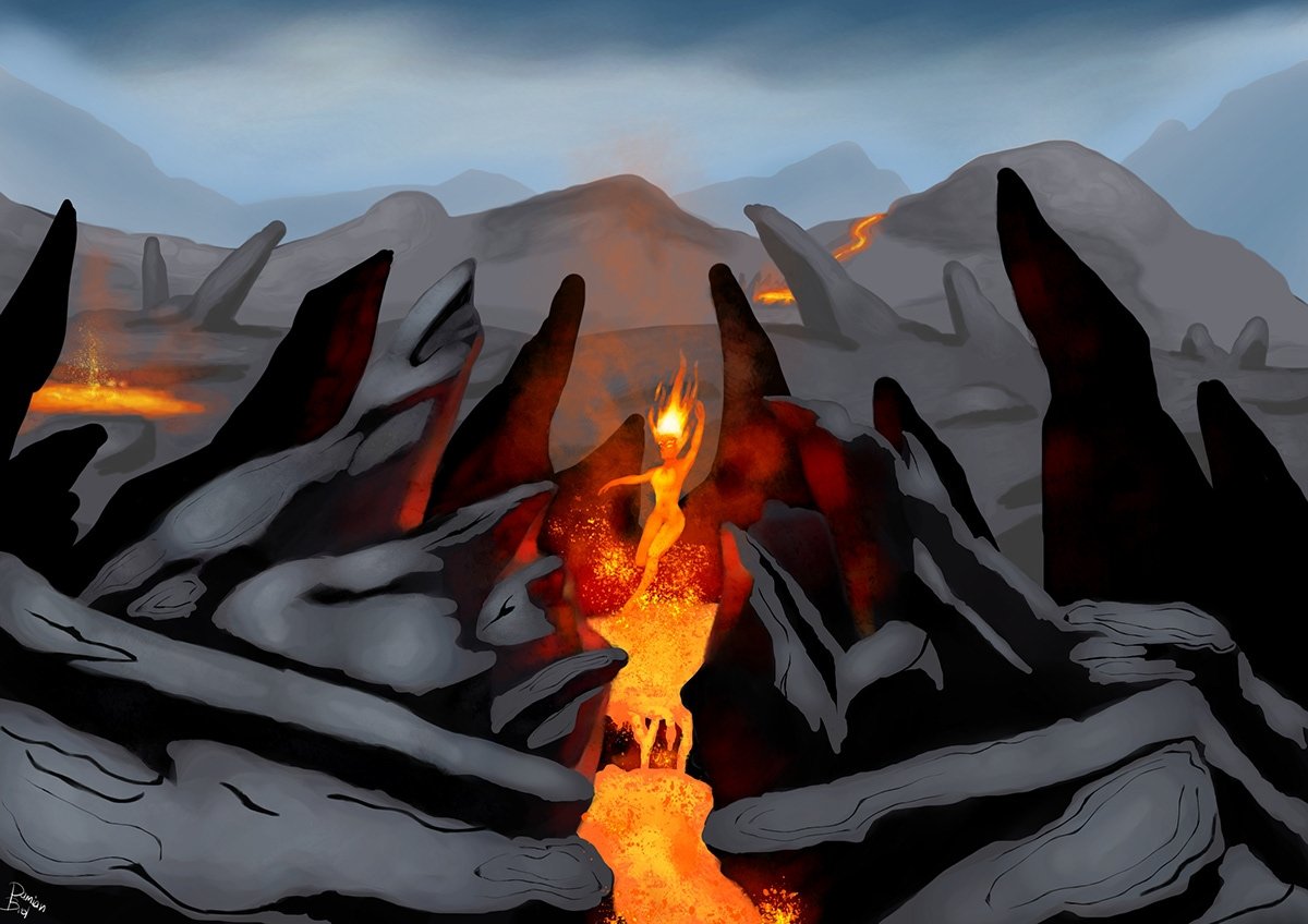 Пейзаж огонь и лава