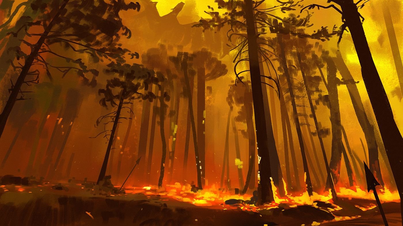 Лесной пожар акварель