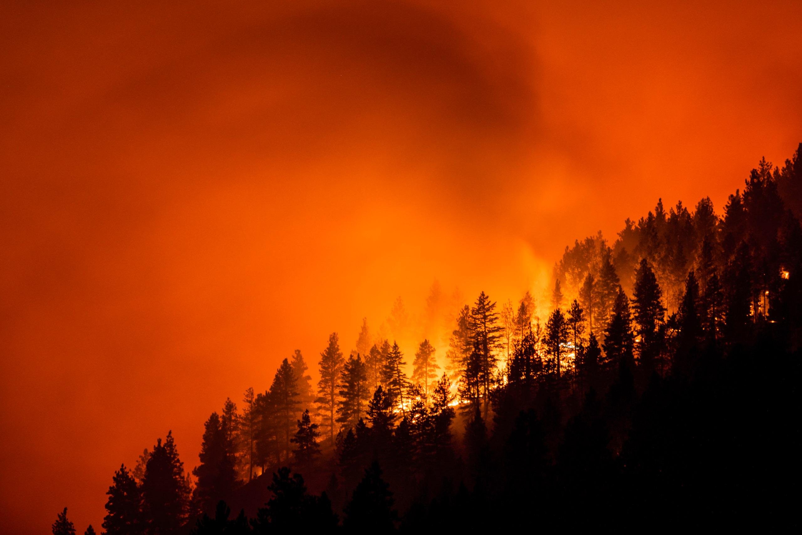 Пожар в лесу ночью