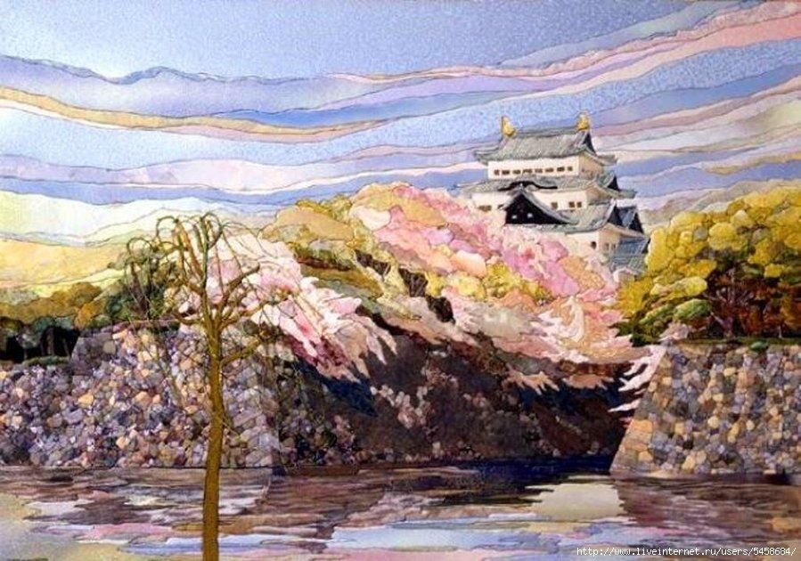 Японский пейзаж квилт кинусайга