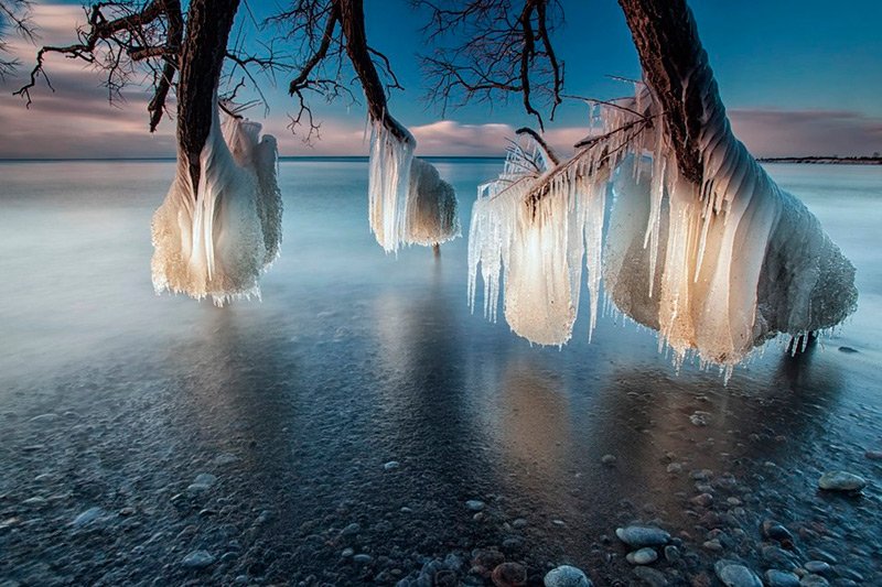 Ледяные пейзажи - это восхитительное зрелище, которое природа создает в холодные зимние месяцы. Они обладают неповторимой красотой и уникальностью, захватывая воображение своей изящностью и магической атмосферой. Ледяные скульптуры, образовавшиеся из замерзшей воды, превращают окружающий мир в настоящий сказочный ледниковый лабиринт. Кристаллические формы и переливающиеся оттенки льда создают неповторимые отражения и игры света, добавляя еще больше загадочности и мистики этому многомерному пейзажу. Ледяные пейзажи - настоящее произведение искусства, разбросанное по земле, которое привлекает внимание не только своей красотой, но и уникальной энергетикой, передающей чувство спокойствия и гармонии.