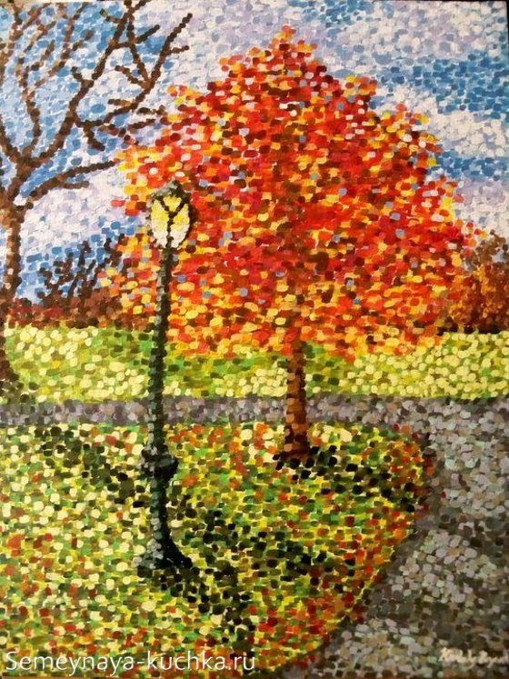 Осенний пейзаж ватными палочками - это удивительное искусство, которое может создать прекрасные образы при помощи самых простых материалов. Ватные палочки придают особый эффект, позволяя передать мягкость и теплоту осеннего ландшафта. Мастера этого жанра используют различные оттенки коричневого, оранжевого и желтого для создания отражения осенних листьев, а также добавляют штрихи золотистых и красных цветов, чтобы передать красоту опадающих деревьев. Осенний пейзаж ватными палочками - это не только способ изобразить природу, но и возможность почувствовать тепло и уют осеннего времени года.
