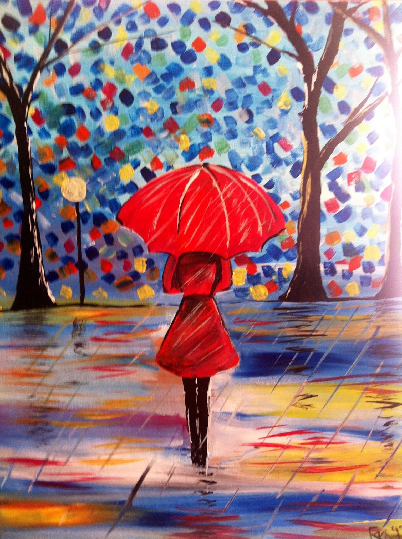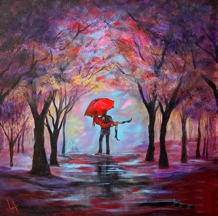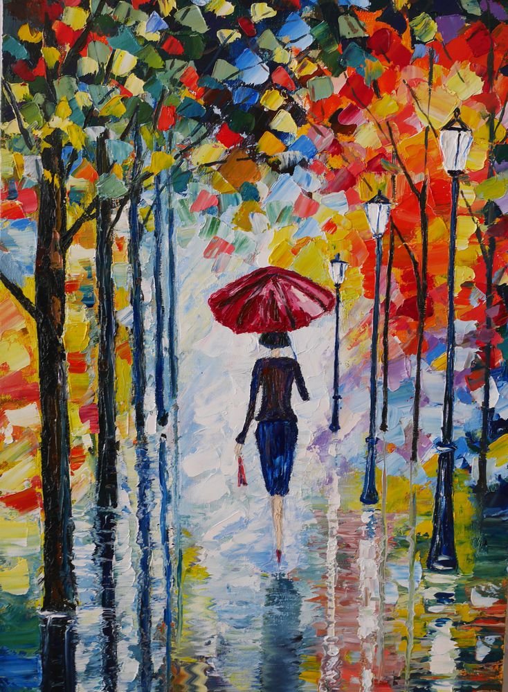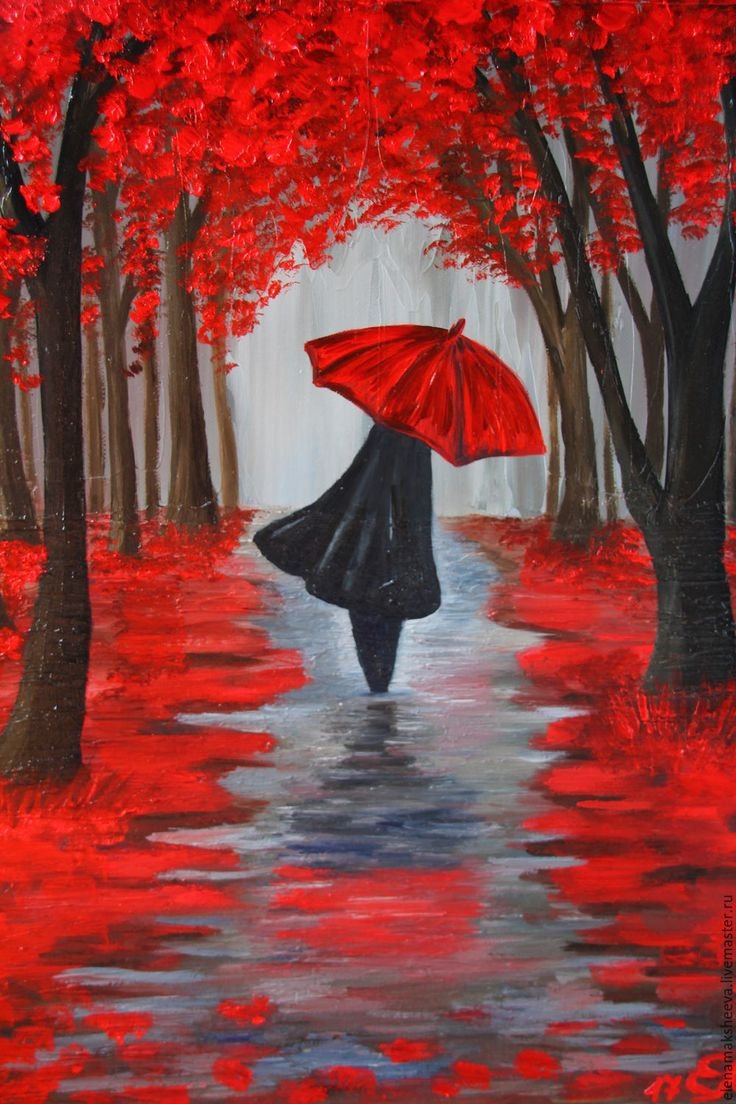 Красный зонт в живописи