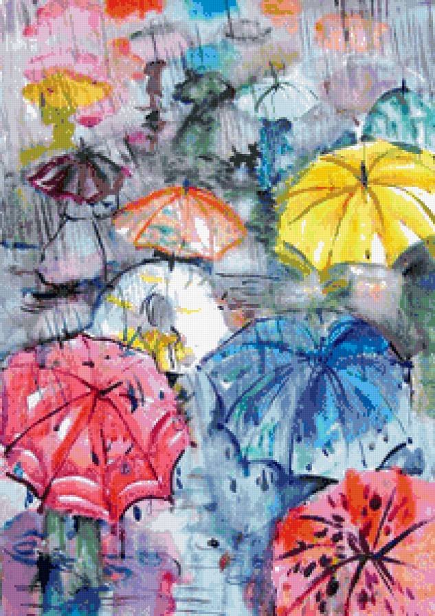 Разноцветные зонтики живопись