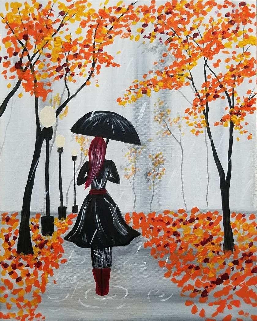 Осень под дождем гуашью