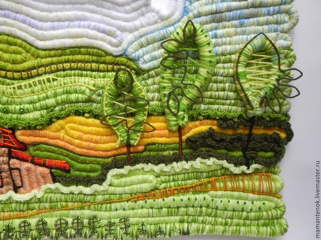 Волшебный пейзаж, созданный из пряжи, приглашает вас в мир фантазии и творчества. Каждый элемент этого удивительного мира, будь то деревья, цветы или животные, выглядит как живой и настоящий благодаря умело связанной пряже. Яркие и насыщенные цвета создают чувство радости и восторга. В каждом узоре пряжи можно увидеть неповторимую текстуру и детали, которые добавляют особую глубину к этому пейзажу. Давайте окунемся в мир произведений из пряжи и насладимся их красотой и уникальностью.