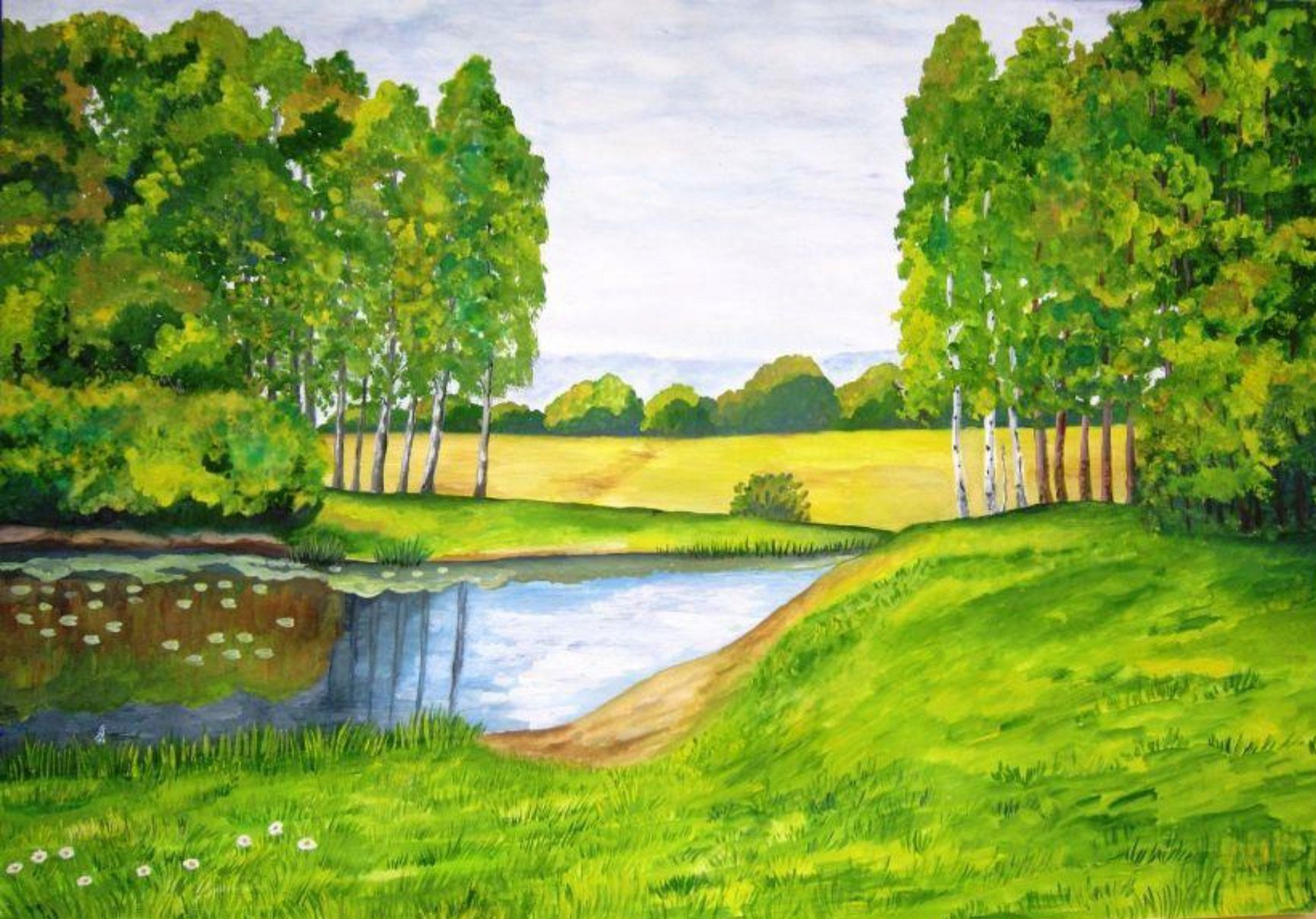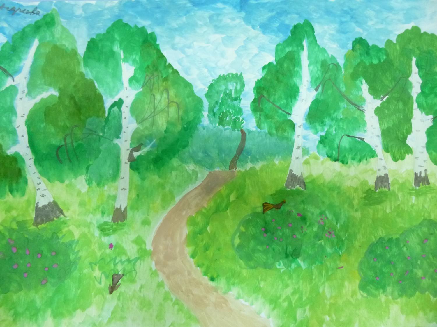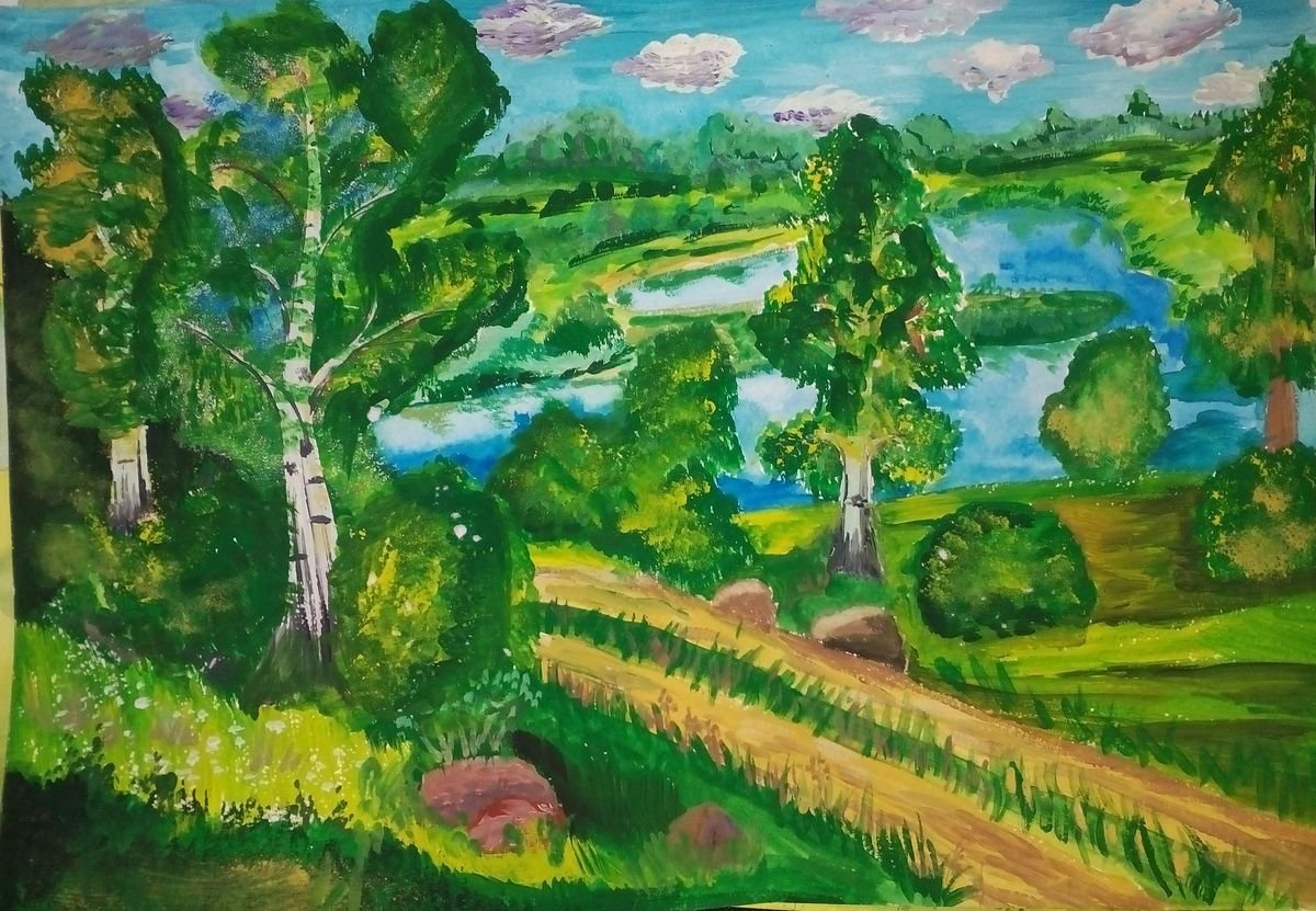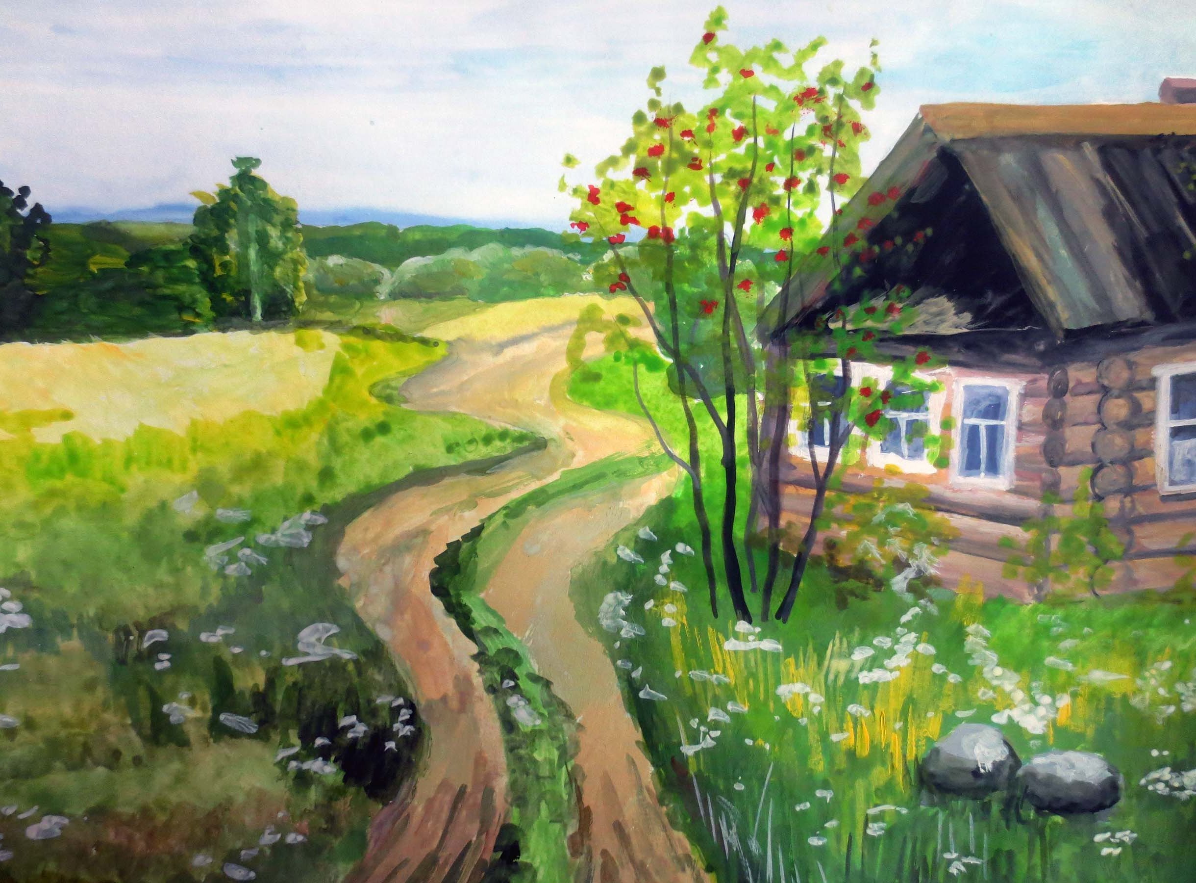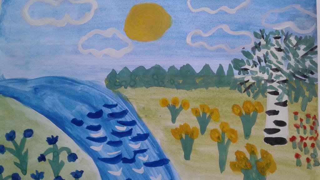 Летний пейзаж гуашью для детей