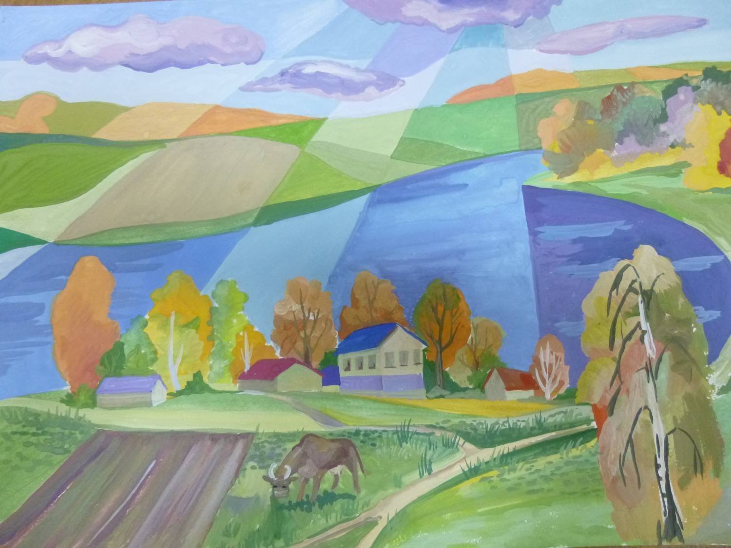 Пейзаж гуашью