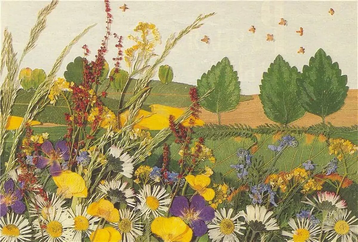 Аппликация из гербария пейзаж