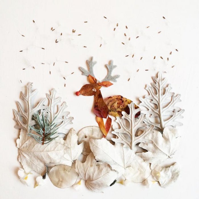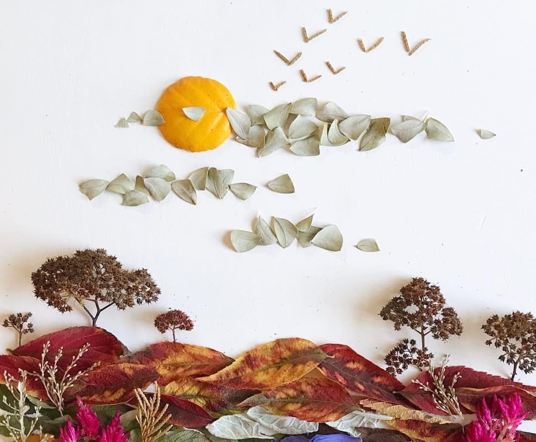 Композиция из сухих листьев