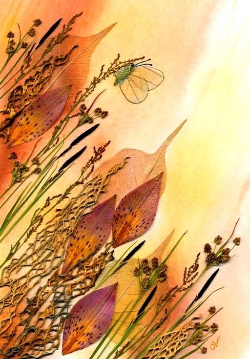 Гербарий картина из сухих листьев