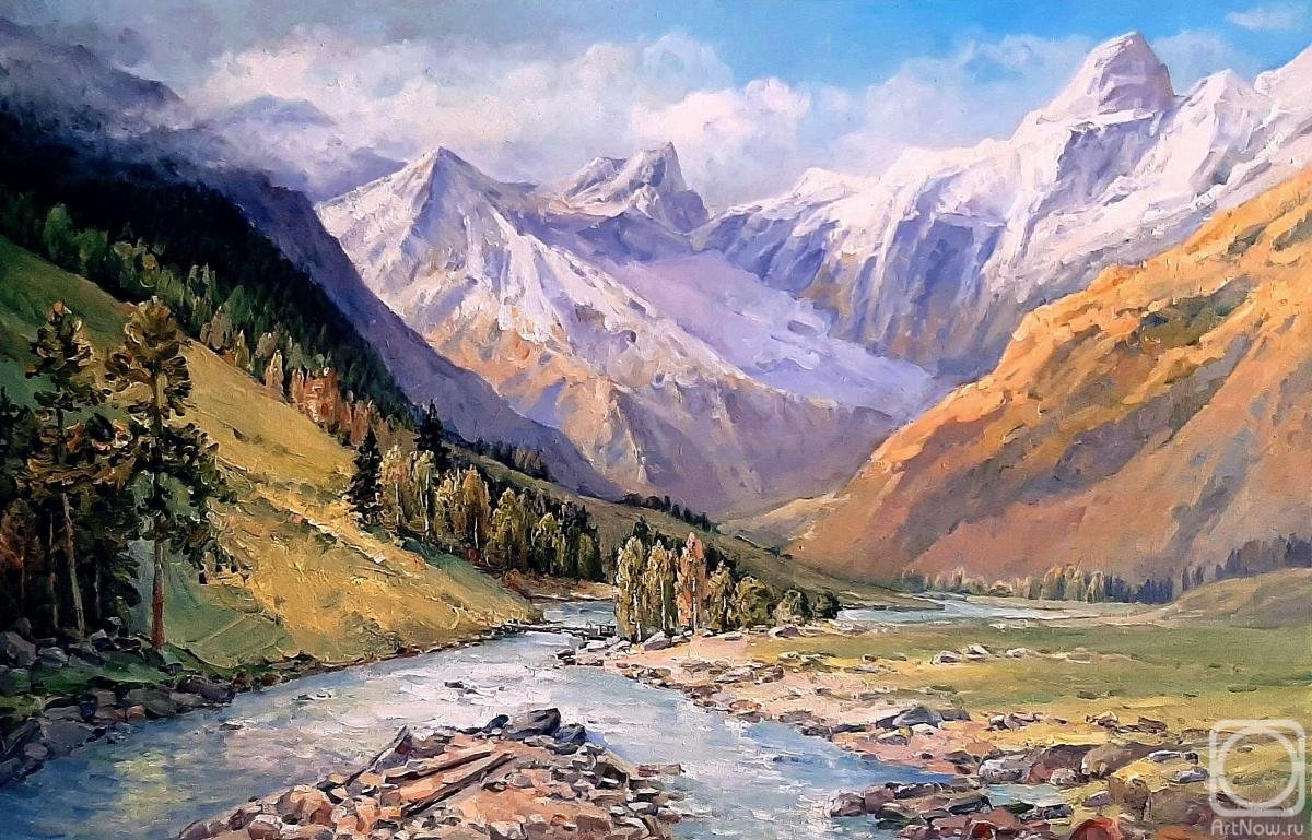 Горные пейзажи Кавказа живопись масло горные реки