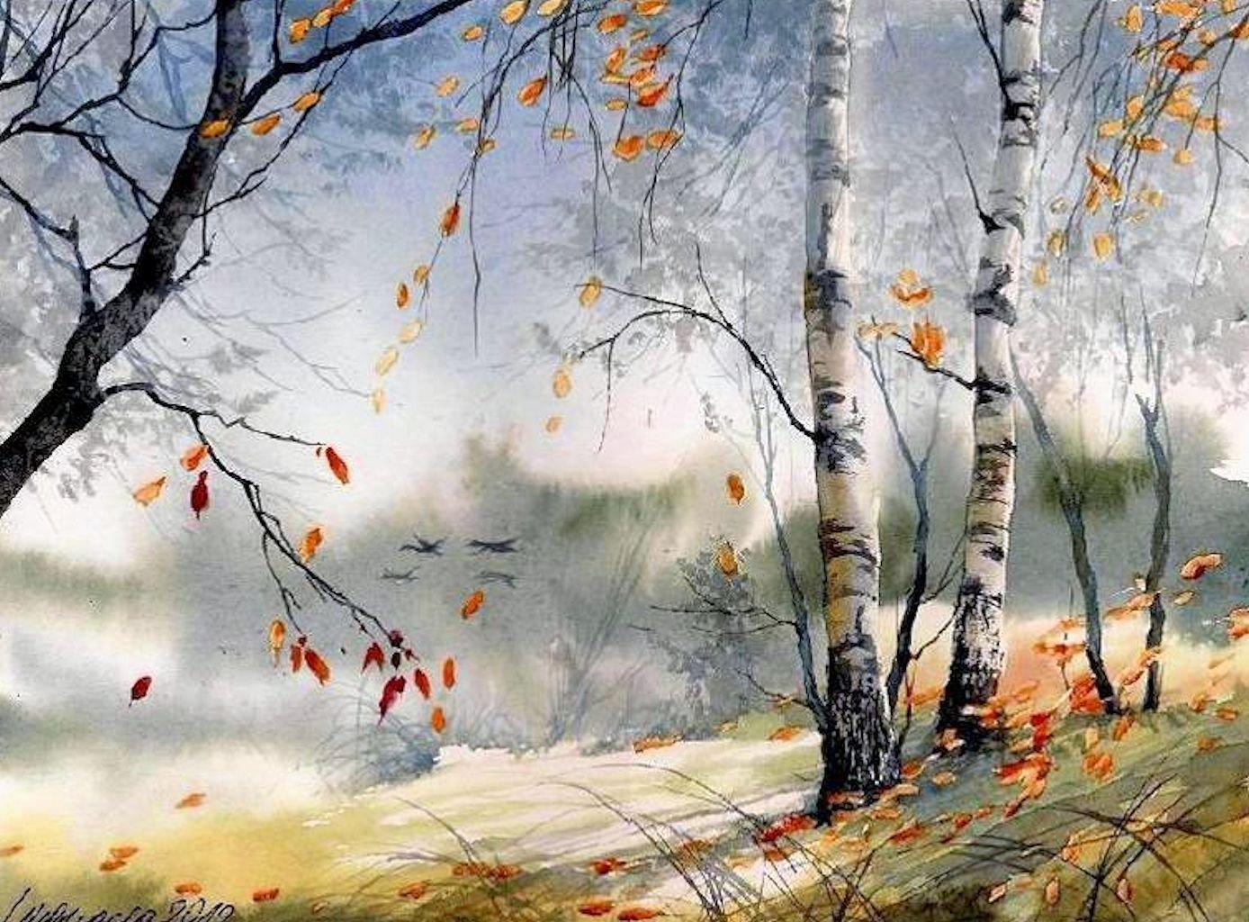 Ольга Литвиненко осень картины акварель