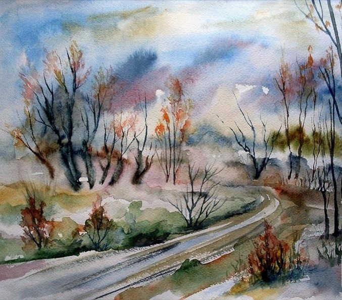 Поздняя осень акварель