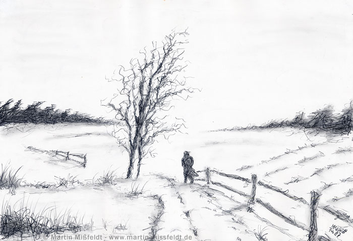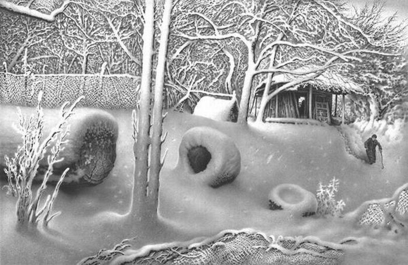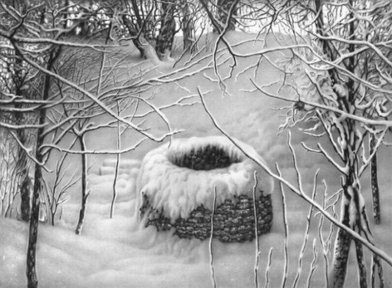 Зимний рисунок карандашом