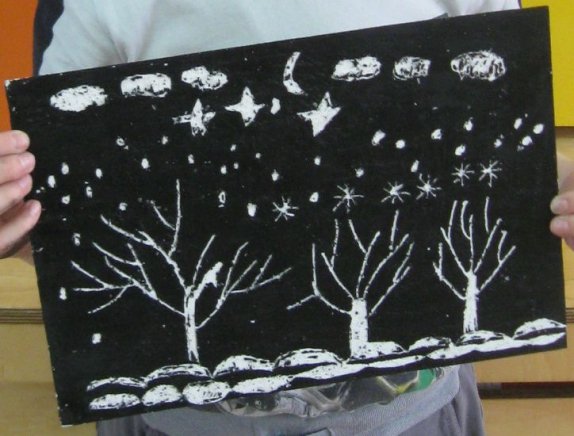 Зима в технике граттаж