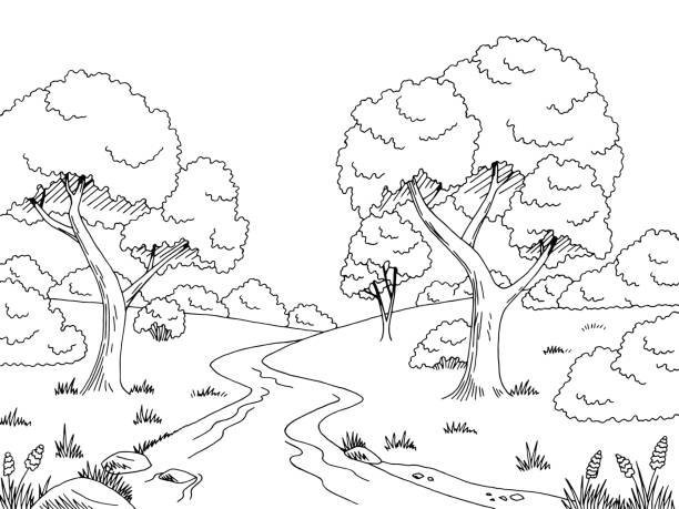 Пейзаж контуром с речкой