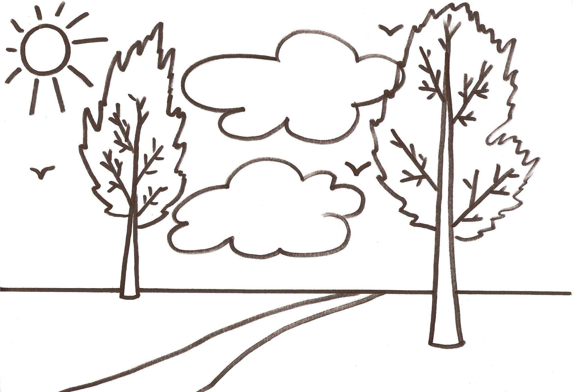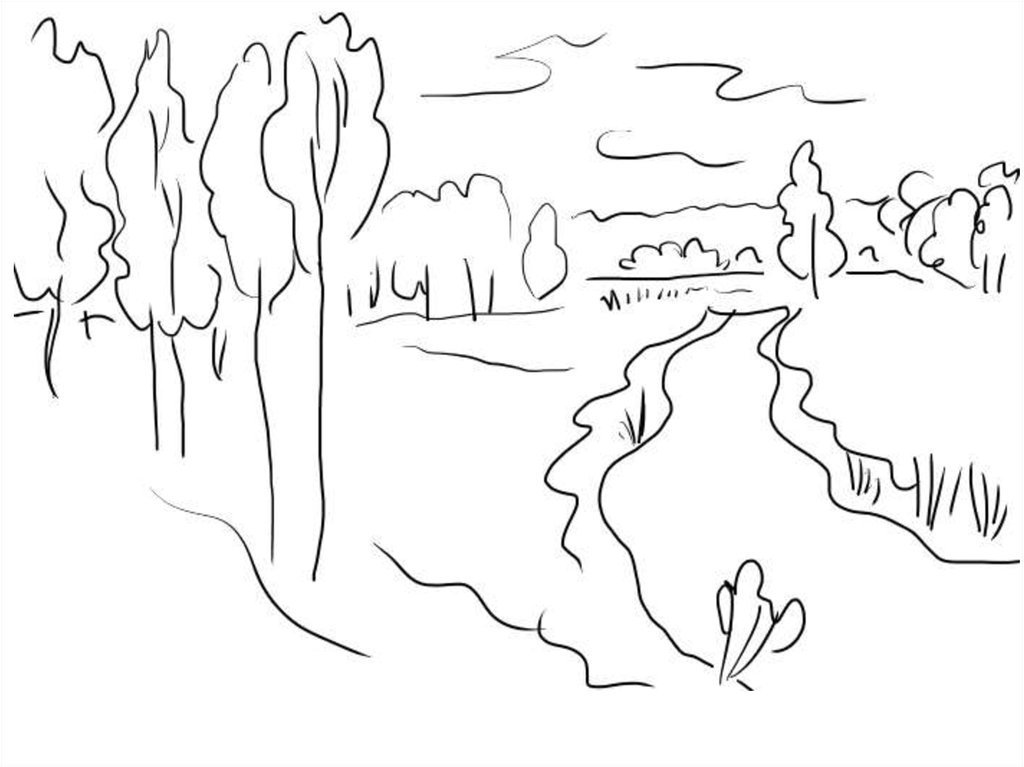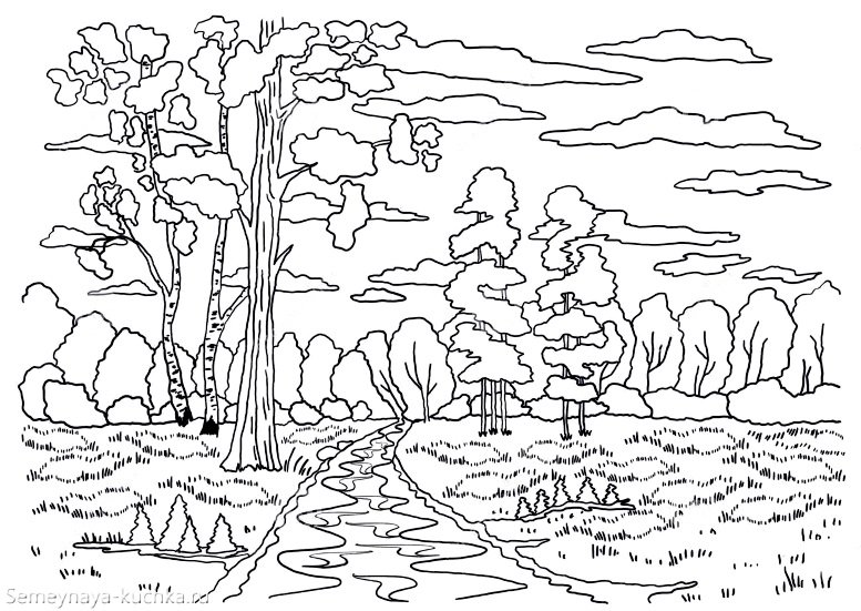 Пейзаж набросок для раскрашивания