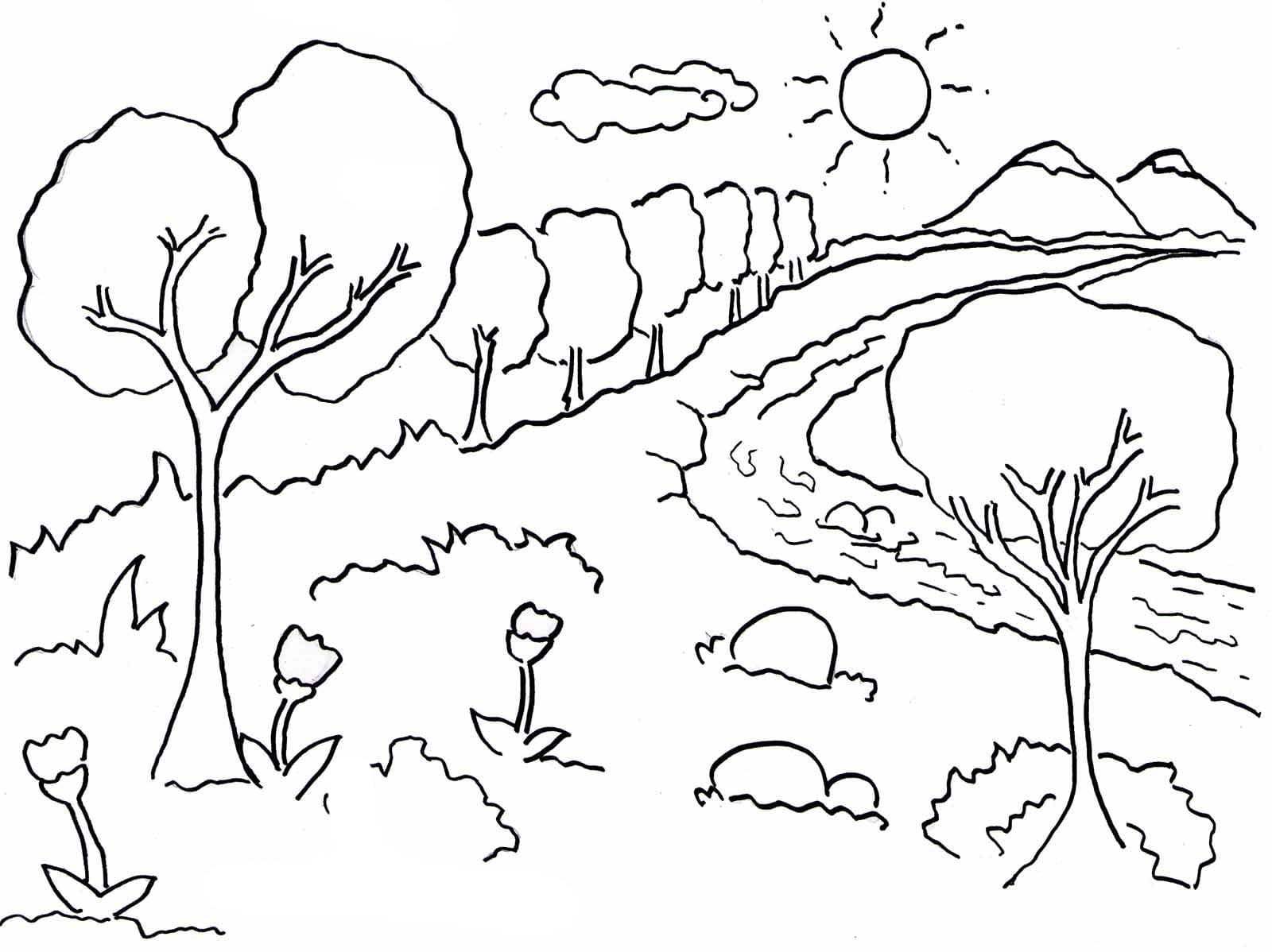 Раскраска пейзаж природы